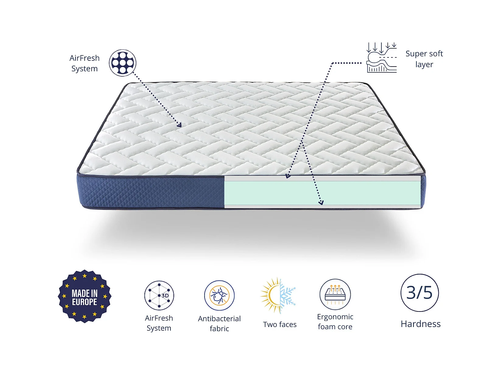 Matelas 135X190 DARIEL, Epaisseur 22 CM, Moussee a memoire, fermete moyenne et respirant