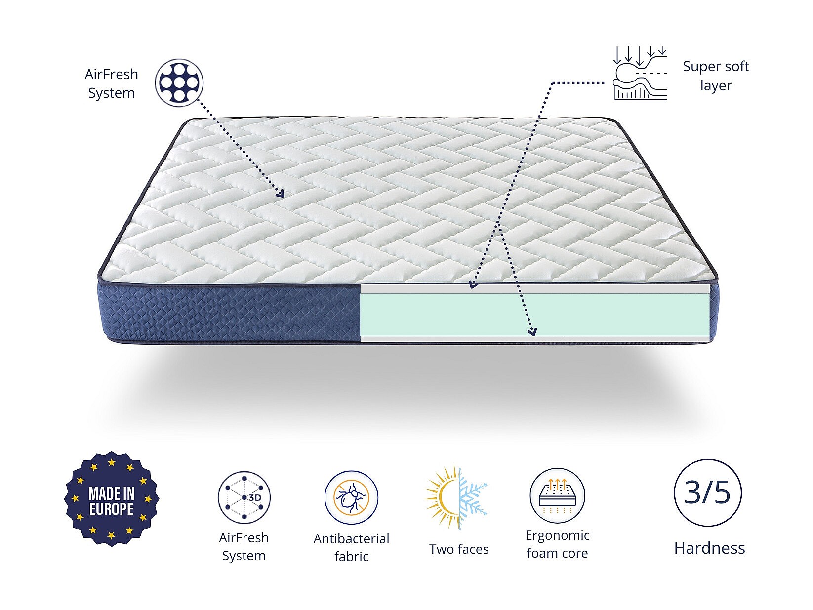 Matelas 135X190 DEO, Epaisseur 22 CM, Moussee a memoire, fermete moyenne et respirant