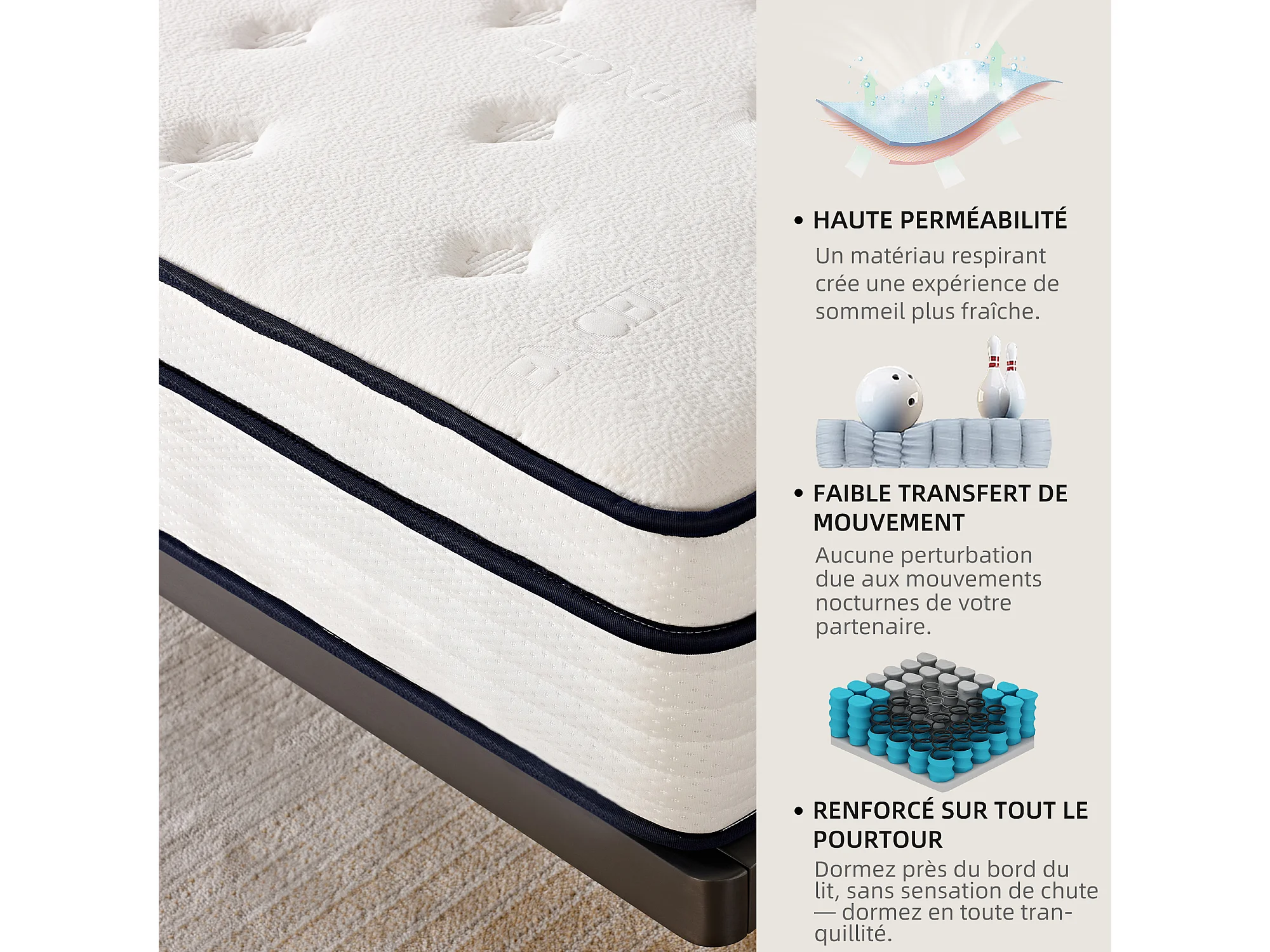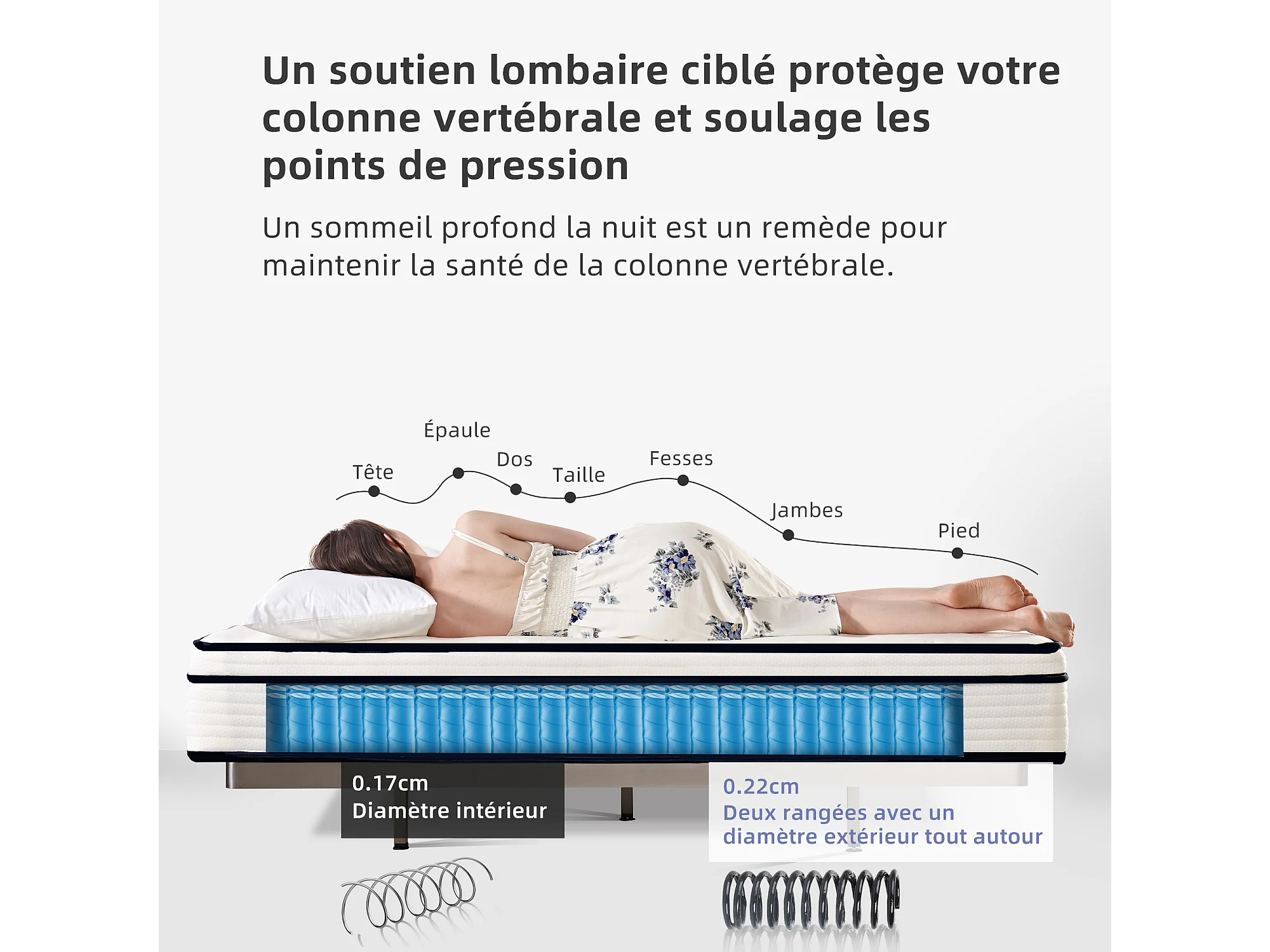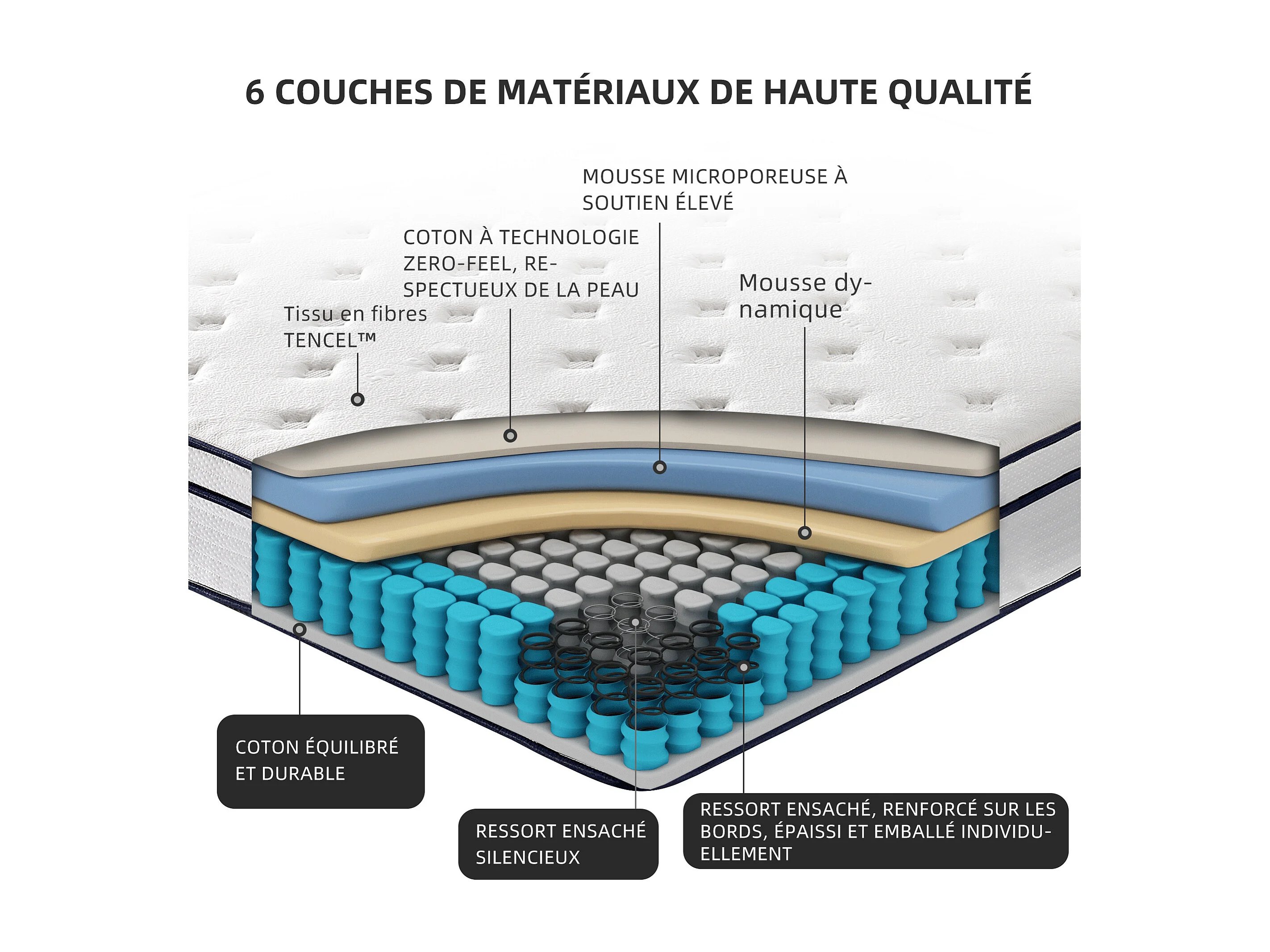 Matelas 140×200 cm à ressorts ensachés,soutien orthopédique de la colonne vertébrale à 7 zones, 25 cm, structure 6 couches, pour adultes
