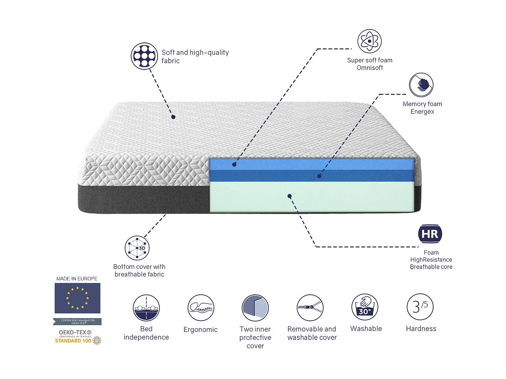 Matelas en mousse SHAULA COSMO 140x180 cm Hauteur 25 cm Déhoussable et lavable