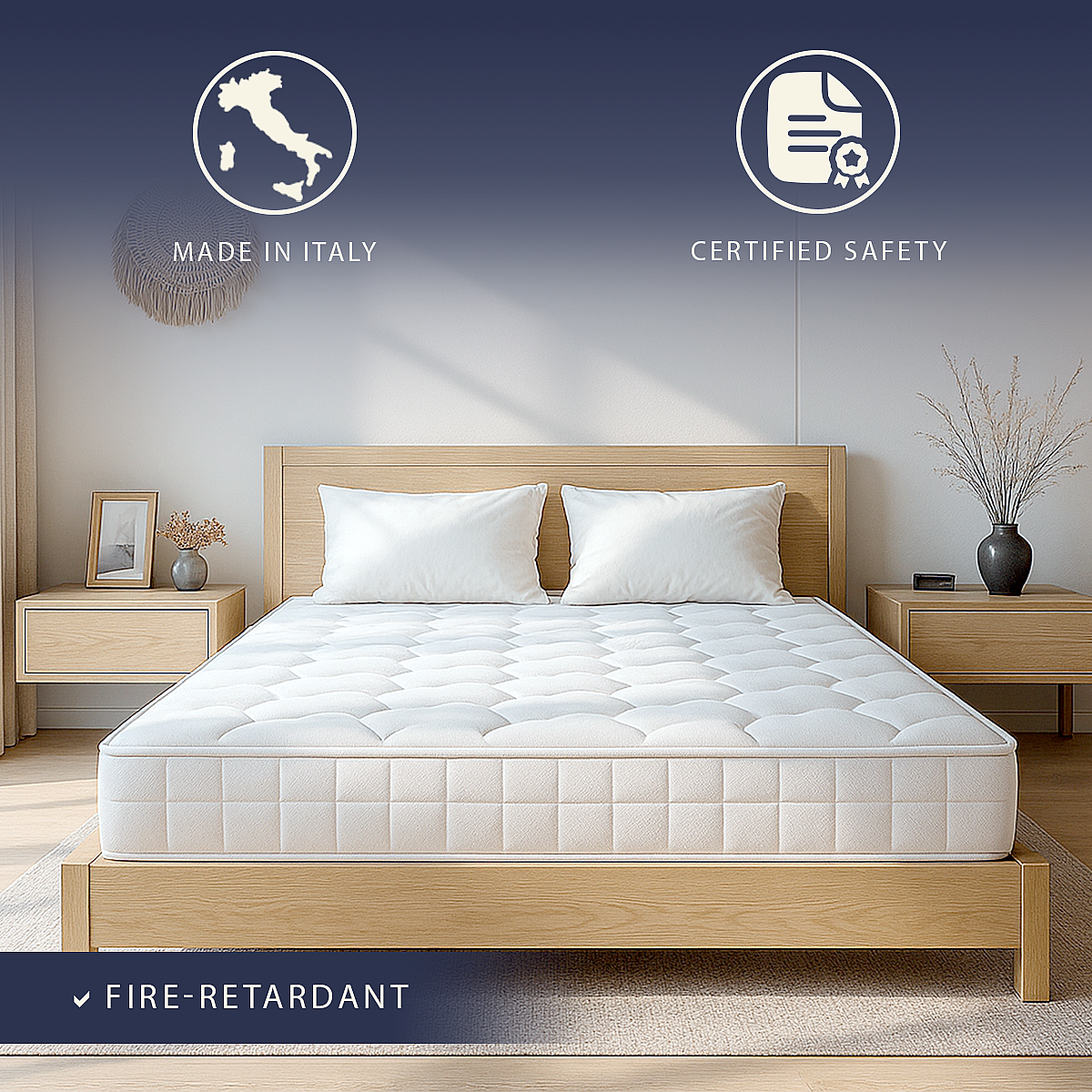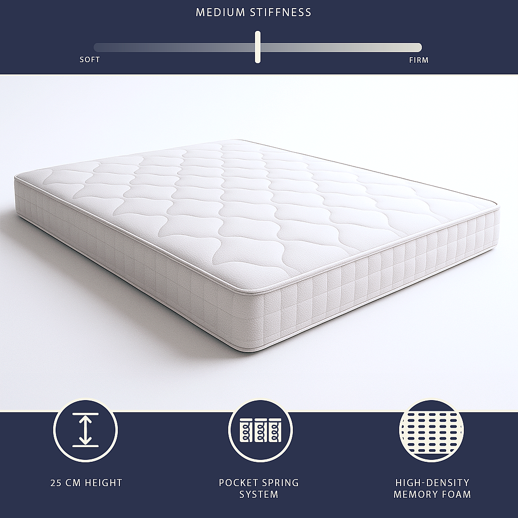 Matelas 140x200 ressorts ensachés + mémoire | H25 cm | Fabriqué en Italie