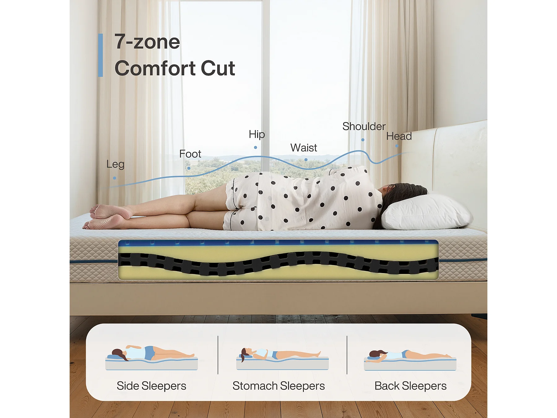 Matelas Memory Foam à zones différenciées 90x200x25