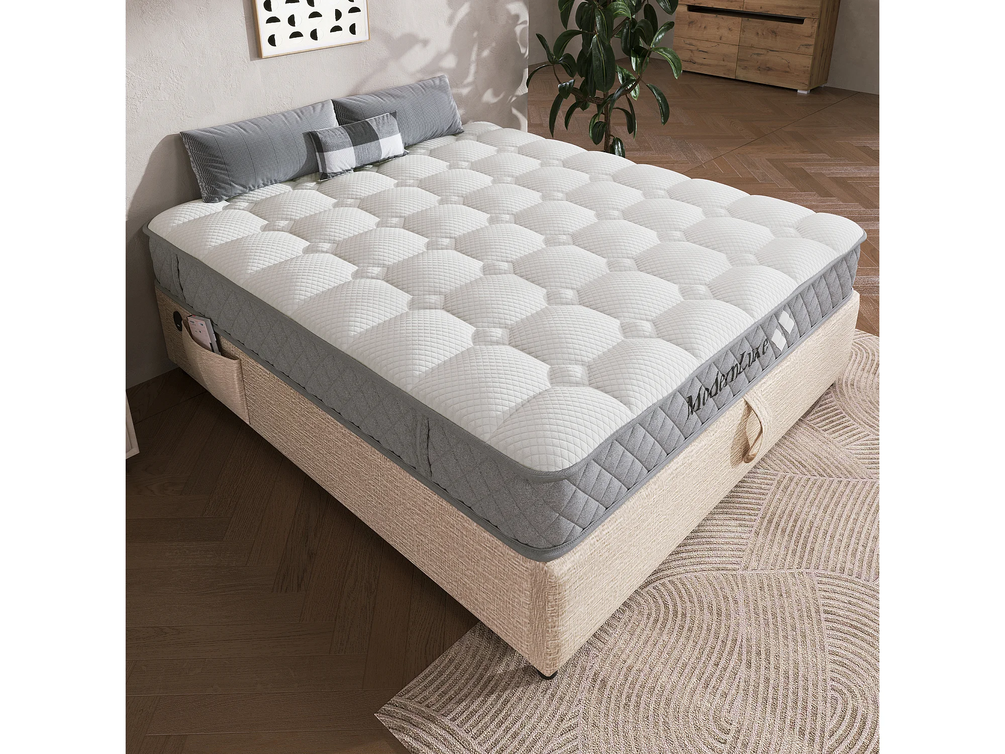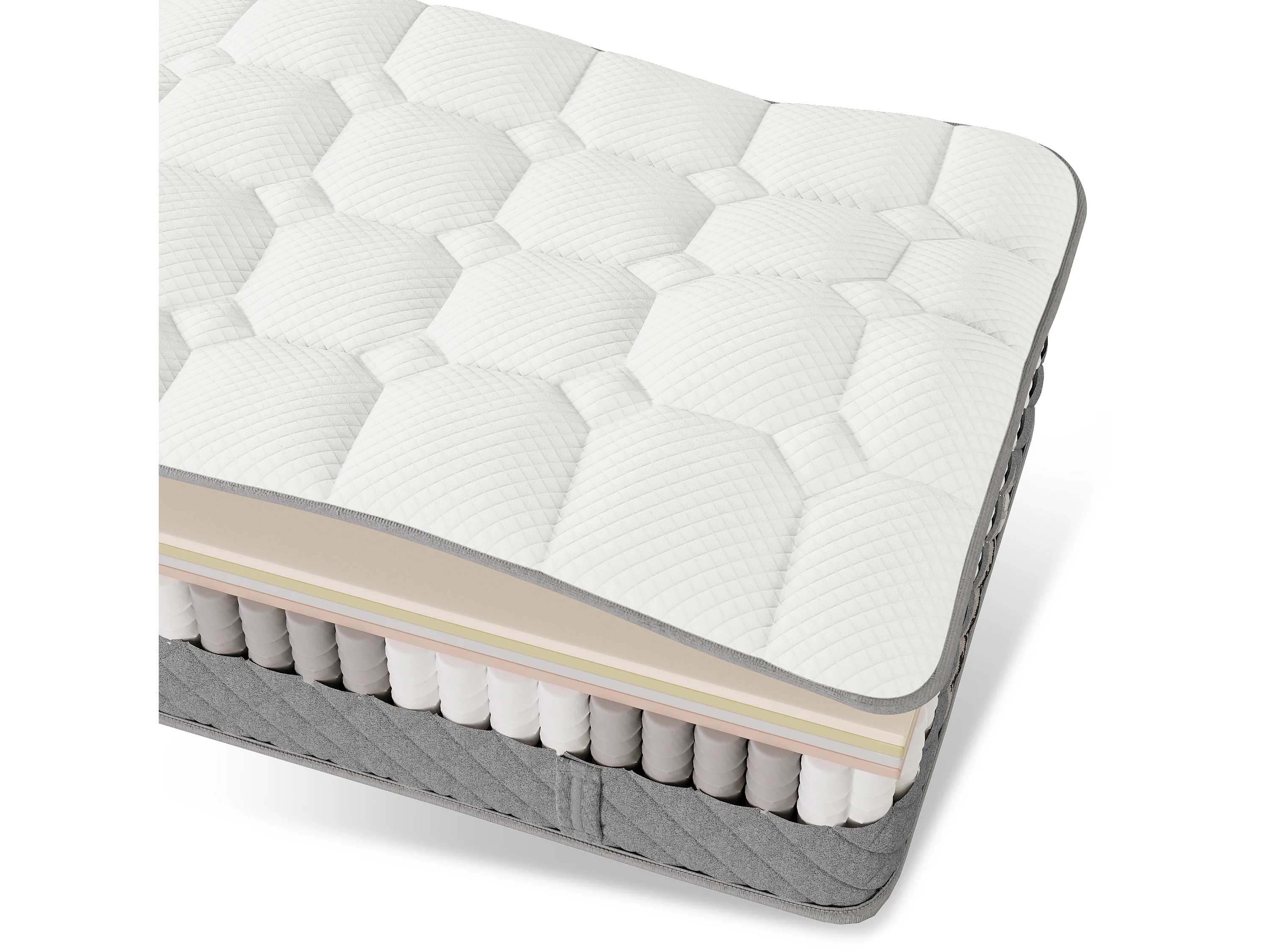 Matelas à ressorts 160x200 cm - 20 cm d'épaisseur - dureté H3 - avec noyau à ressorts ensachés à 7 zones - Blanc + Gris