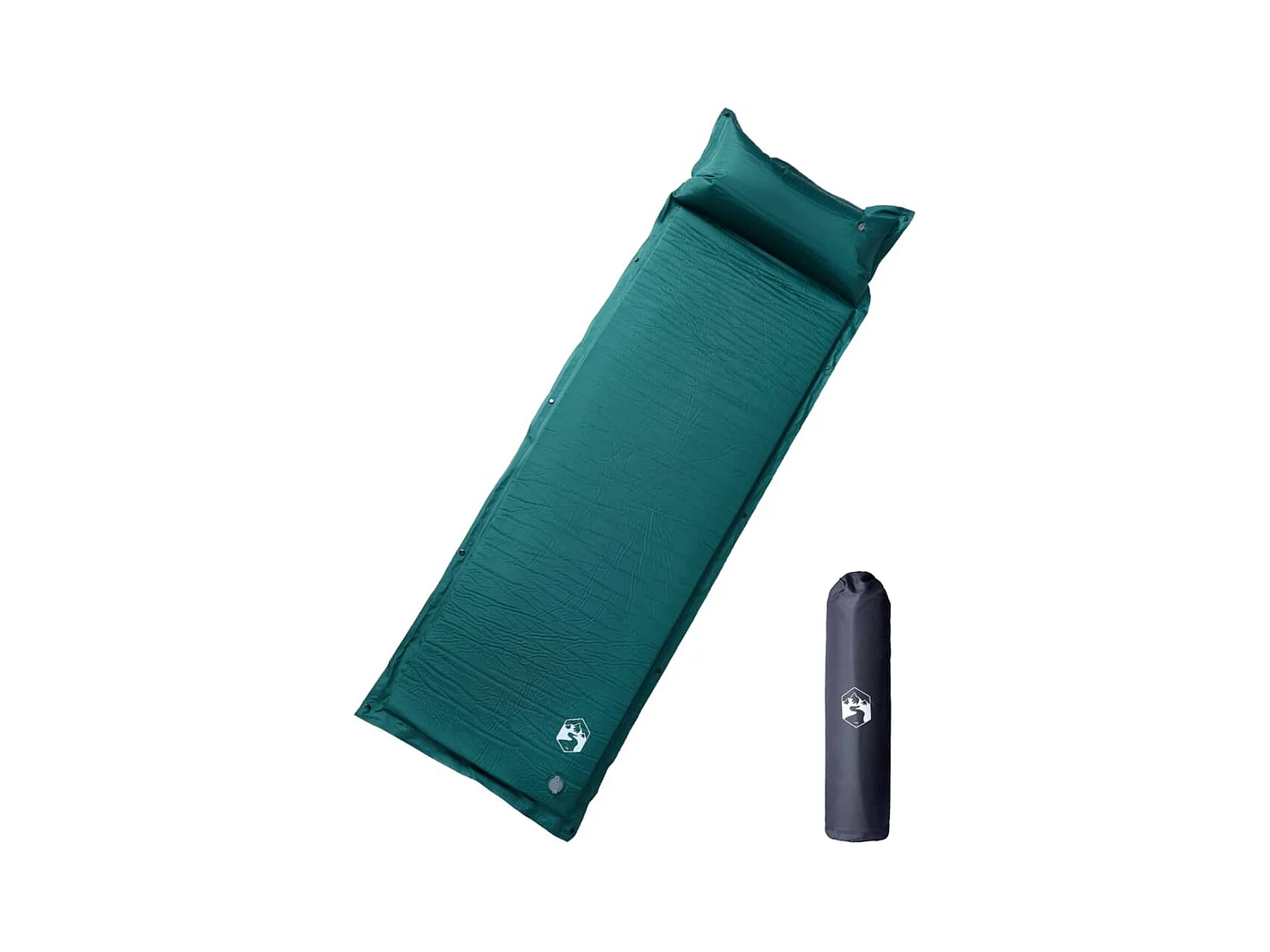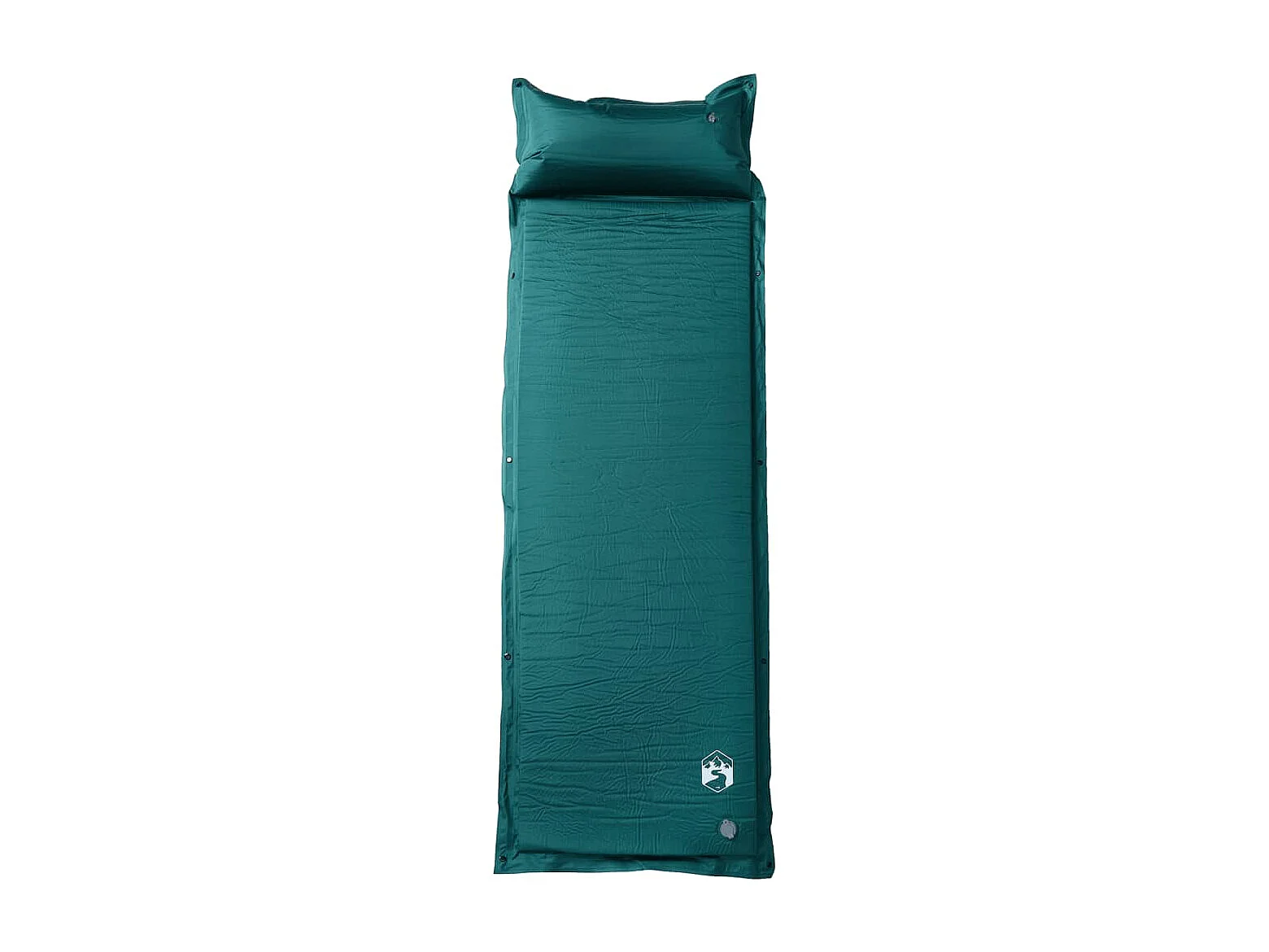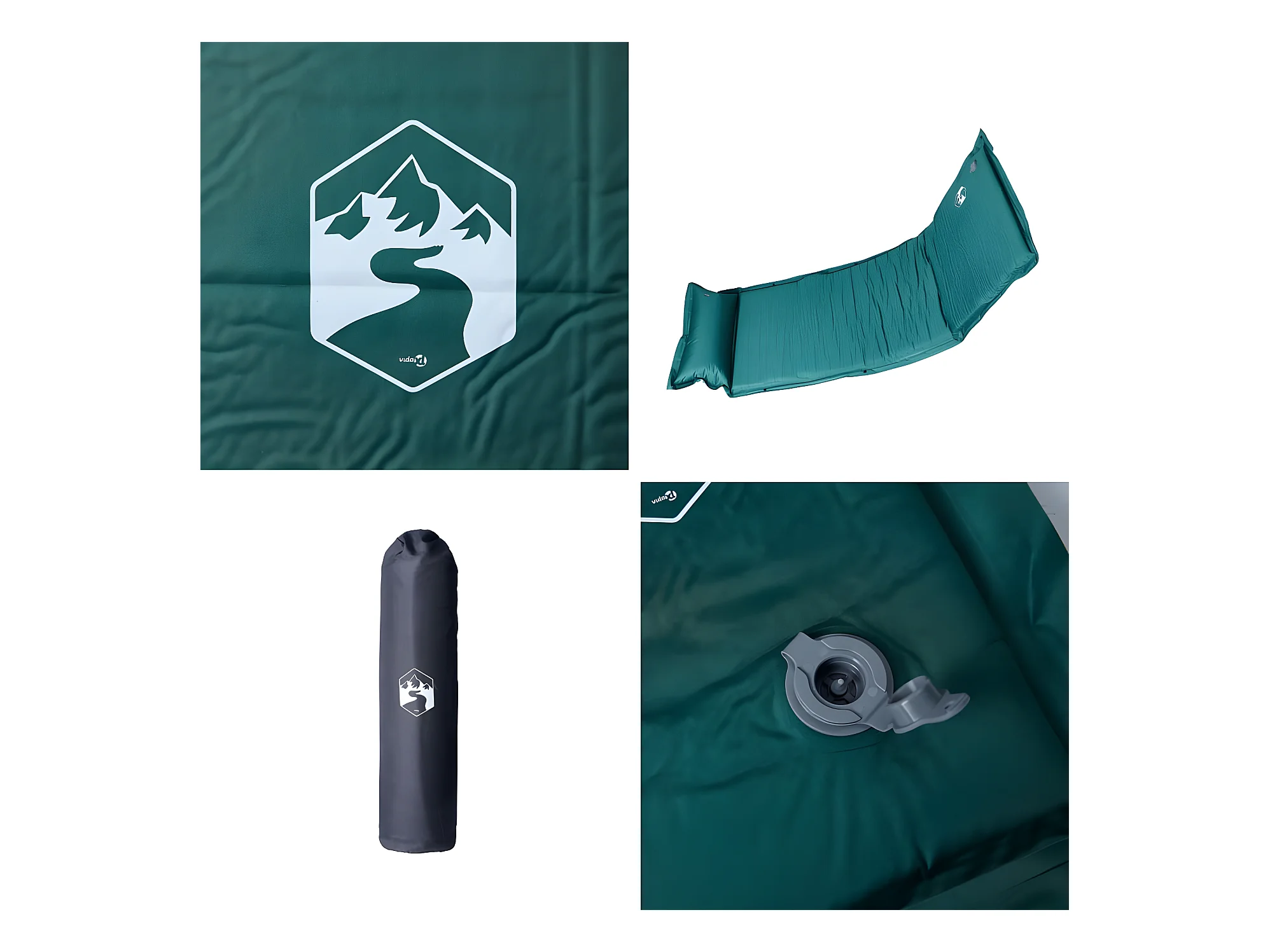 Matelas de camping autogonflant avec oreiller 1 personne vert FR942528