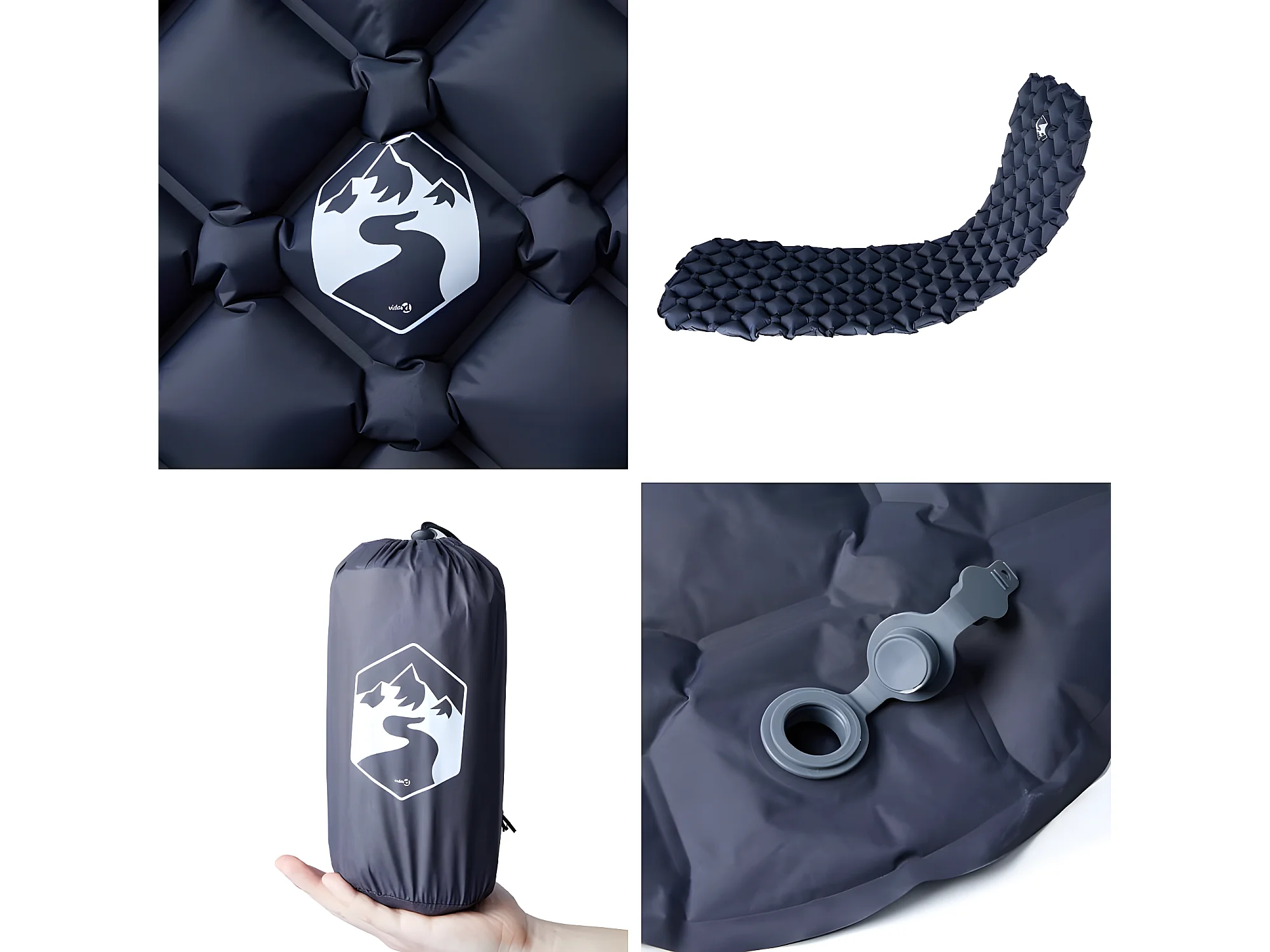 Matelas de camping autogonflant avec oreiller 1 personne gris FR799929
