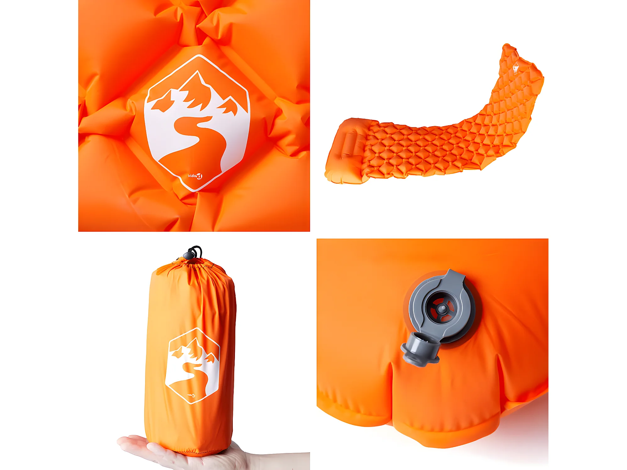 Matelas de camping autogonflant avec oreiller 1 personne orange FR345805