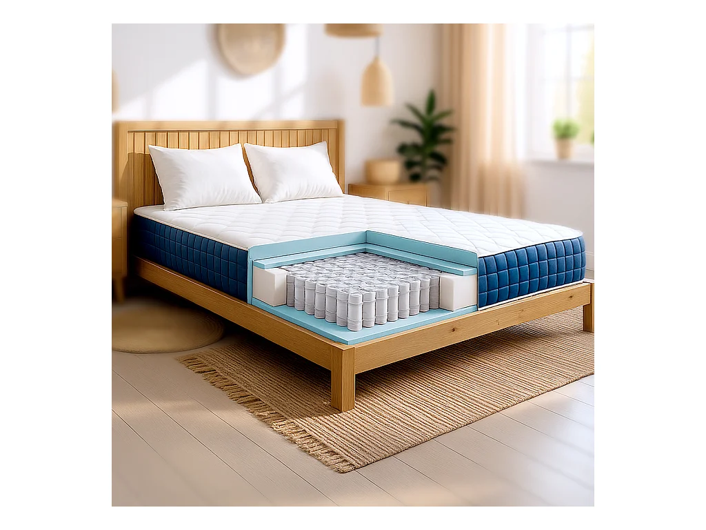 Matelas 160x190 ressorts ensachés + mémoire | H25 cm | Fabriqué en Italie