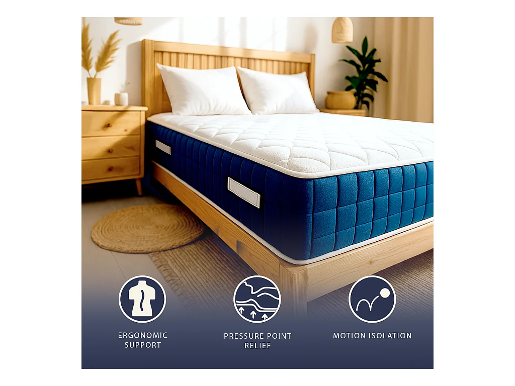 Matelas double français 140 X 200 Ressorts ensachés et Memory Foam | Hauteur 30 cm | Hypoallergénique | Médical