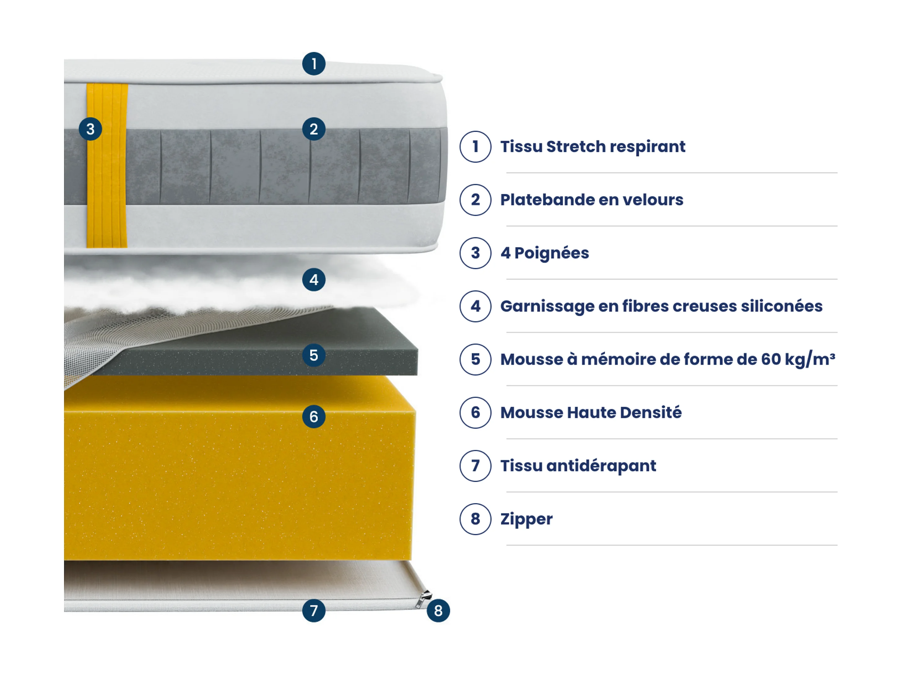 Matelas 90x190 Enfant et Adulte 1 Place Haven - Mémoire de Forme 60 kg/m³ Haute Qualité - Contre le Mal de Dos - Épaisseur 30 Cm - Confortable