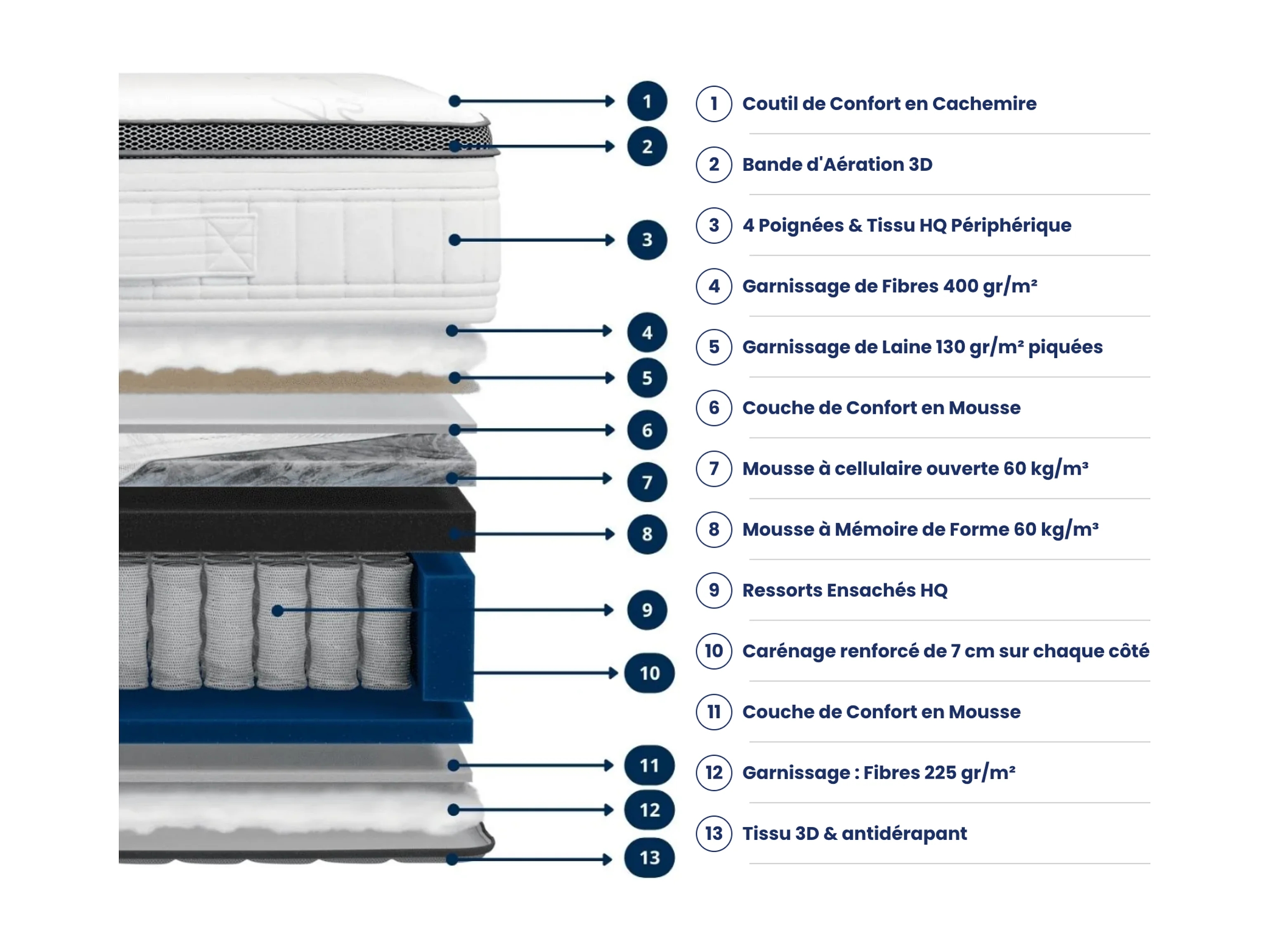 Matelas 160x200 2 Places Prometheus - Hybride : Ressorts Ensachés et Mémoire de Forme 60 kg/m³ Haute Qualité - Contre le Mal de Dos - Ép. 28 Cm