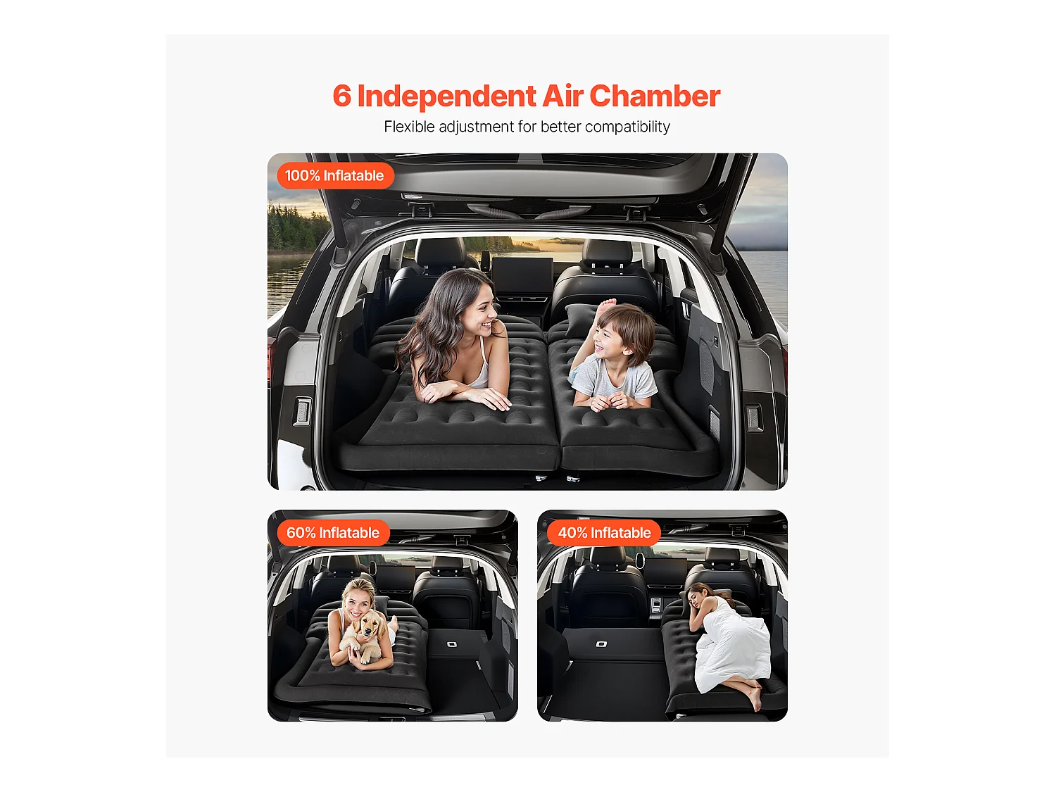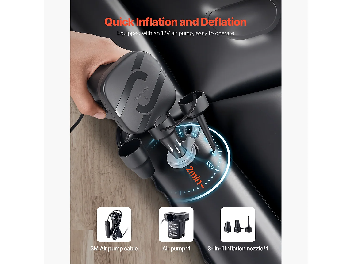 Matelas Gonflable, SucceBuy Matelas Gonflable Voiture Lit de Couchage Floqué avec Pompe à Air Noir