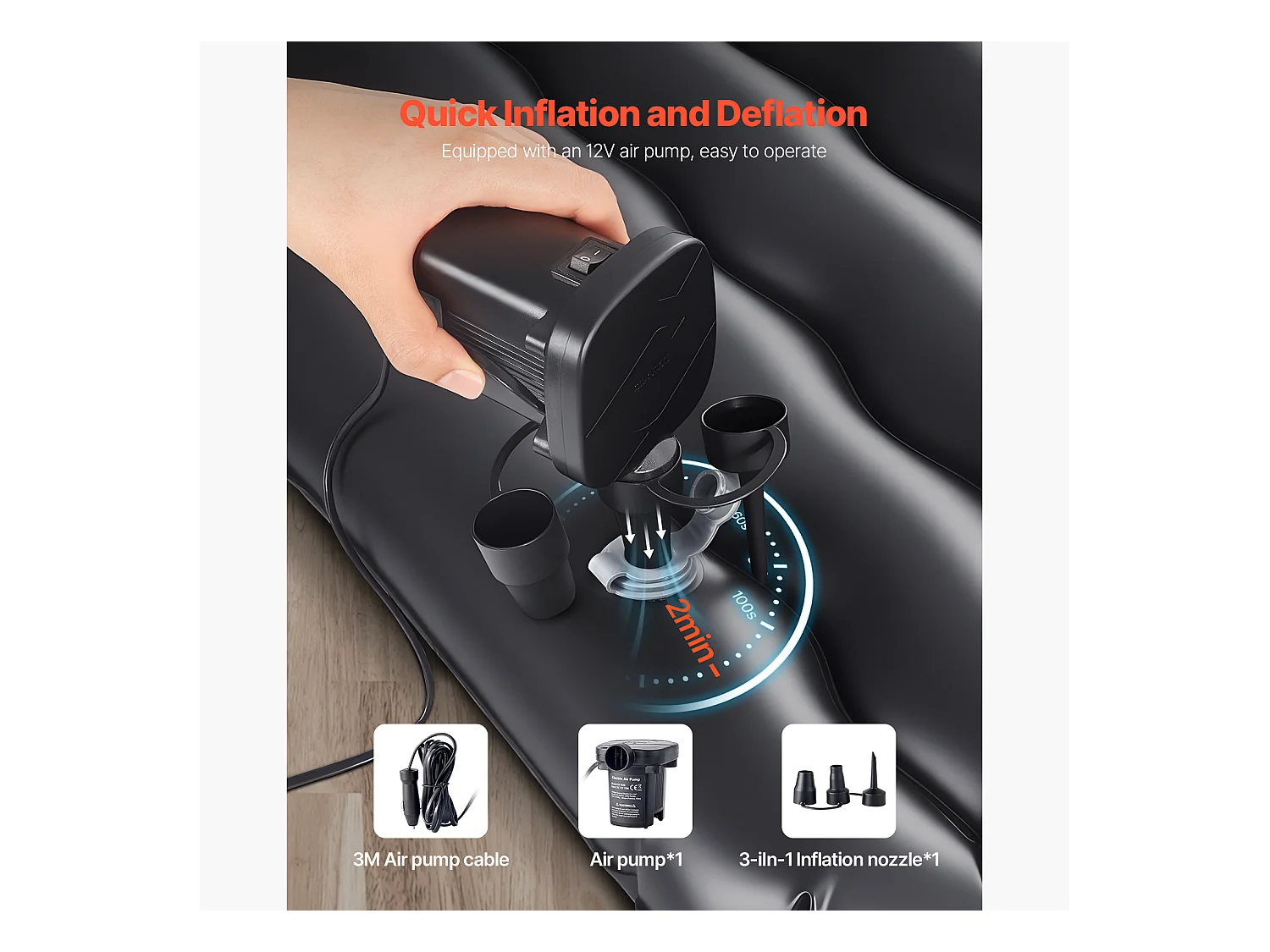 Matelas Gonflable, SucceBuy Matelas Gonflable Voiture Lit de Couchage Floqué avec Pompe à Air Noir