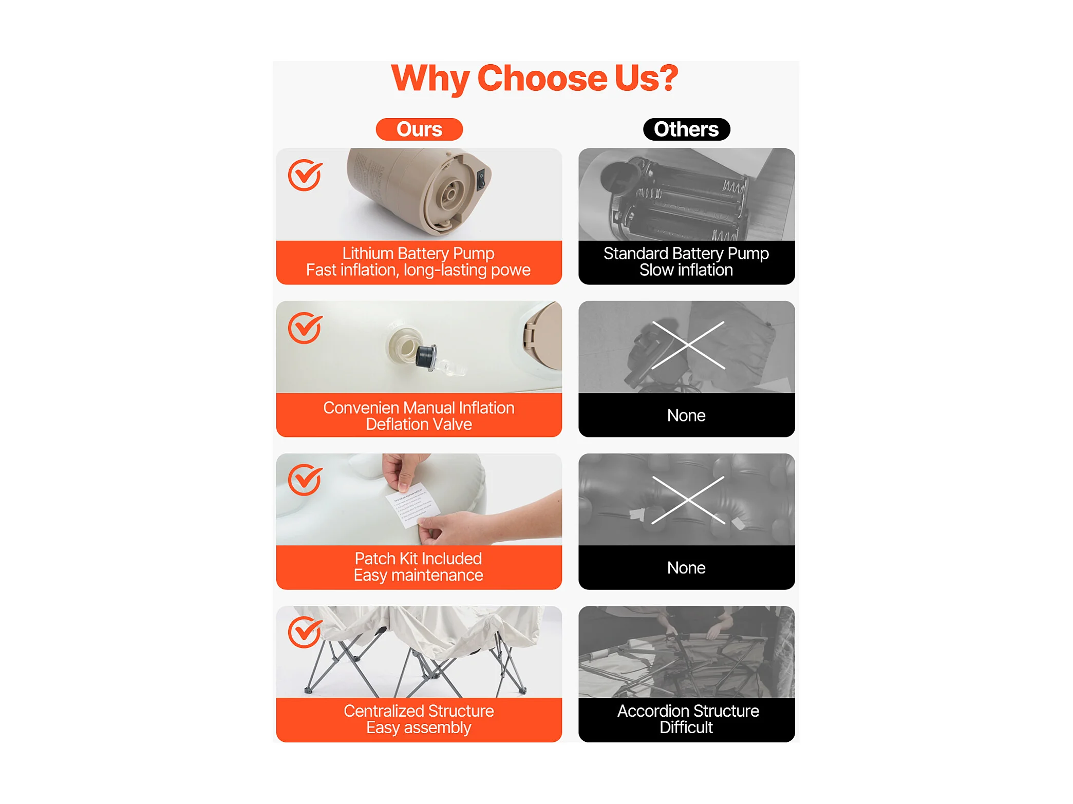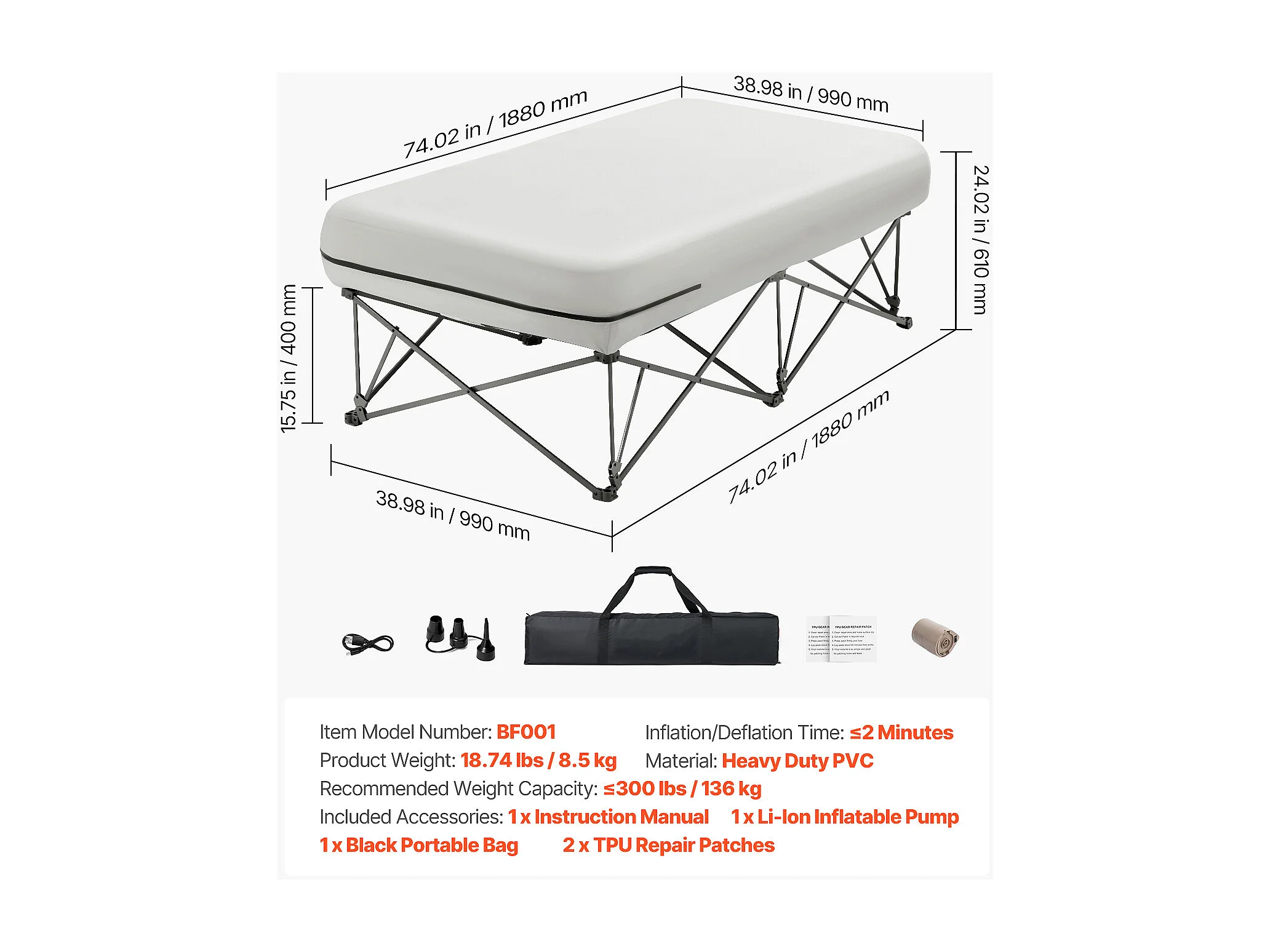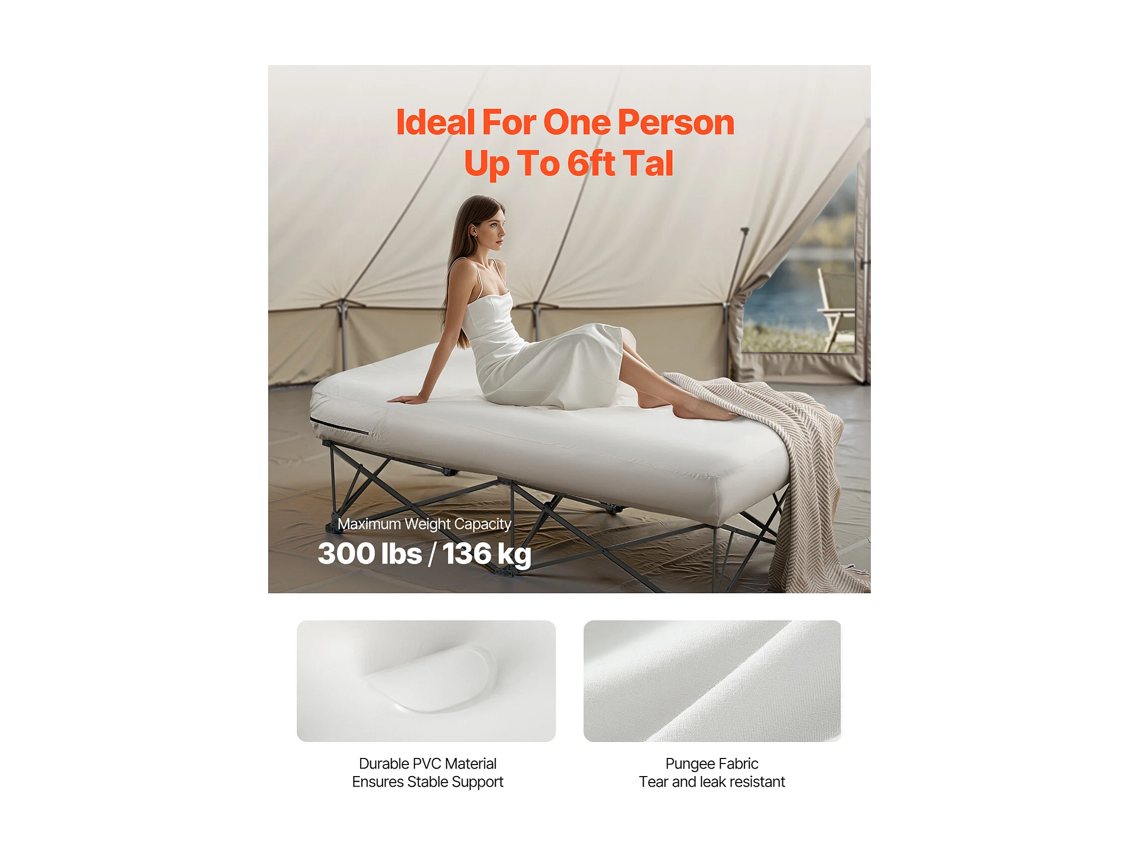 Matelas Gonflable SucceBuy pour 1 Personne avec Cadre et Pompe, Lit de Camping Gonflable de 136 kg