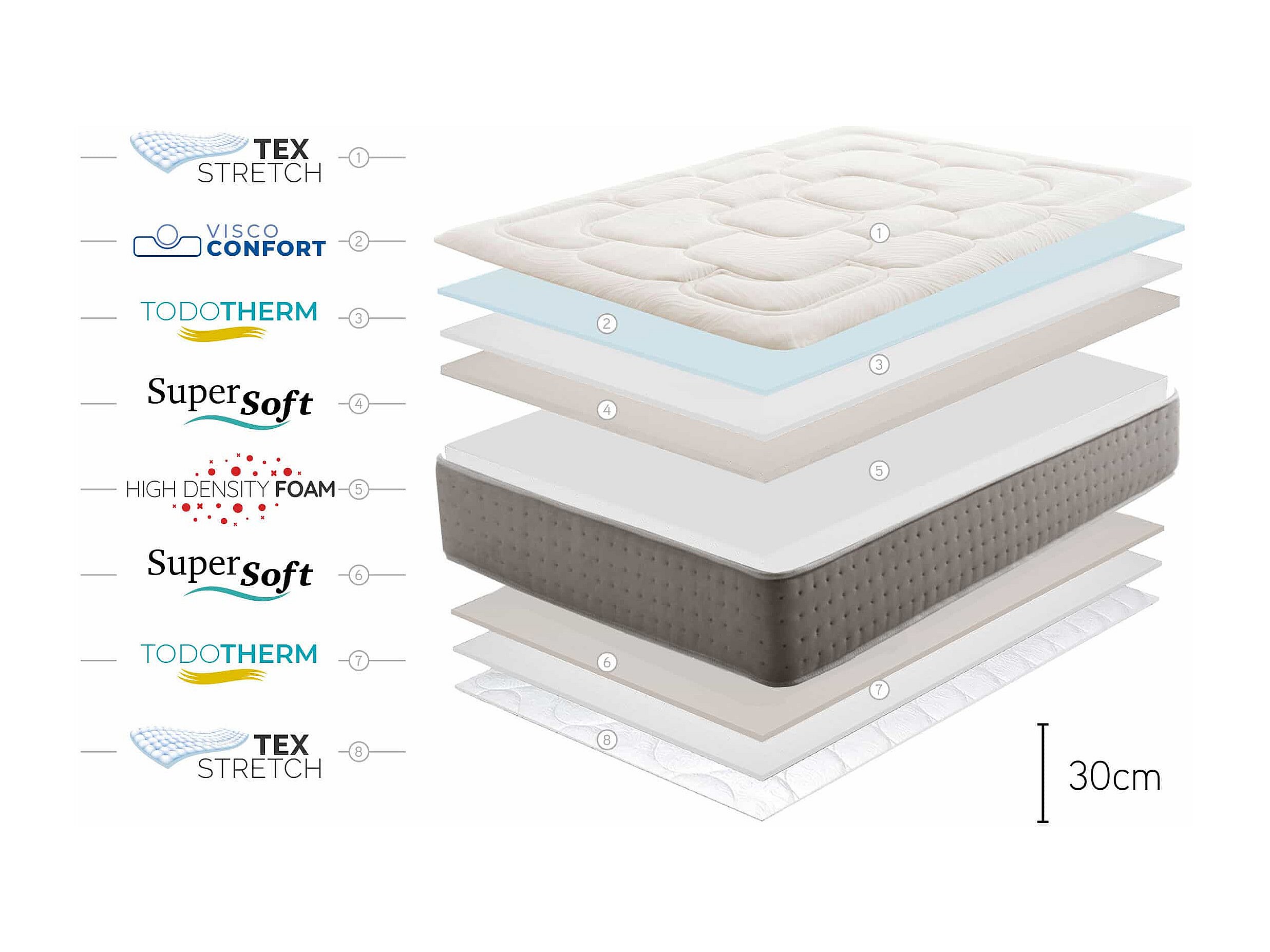 Matelas Mousse à memoire de forme Olympus 30cm- 135 x 200 cm -Moonia