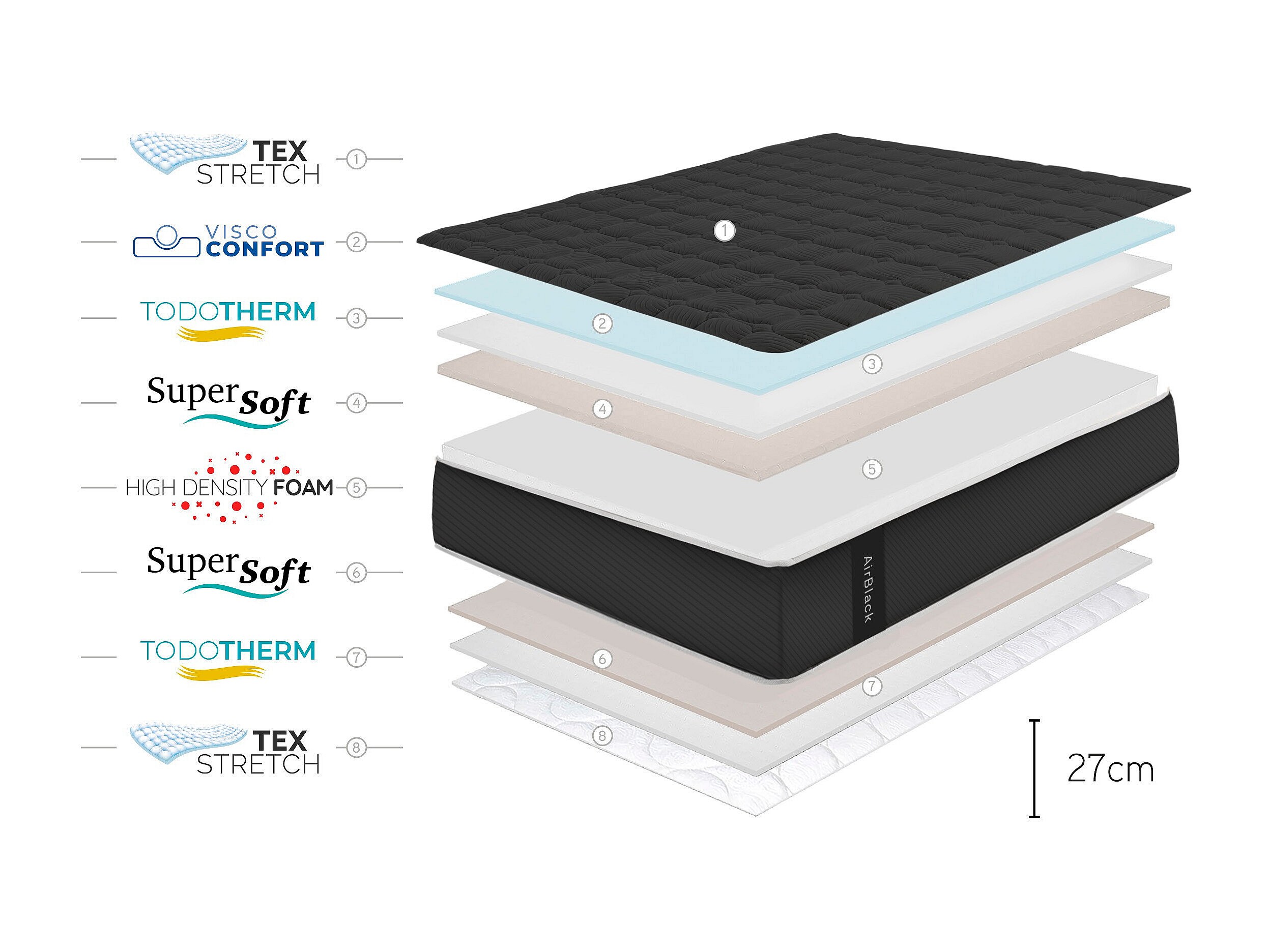 Matelas Premium Black Multizone, 27cm - 120x190 cm