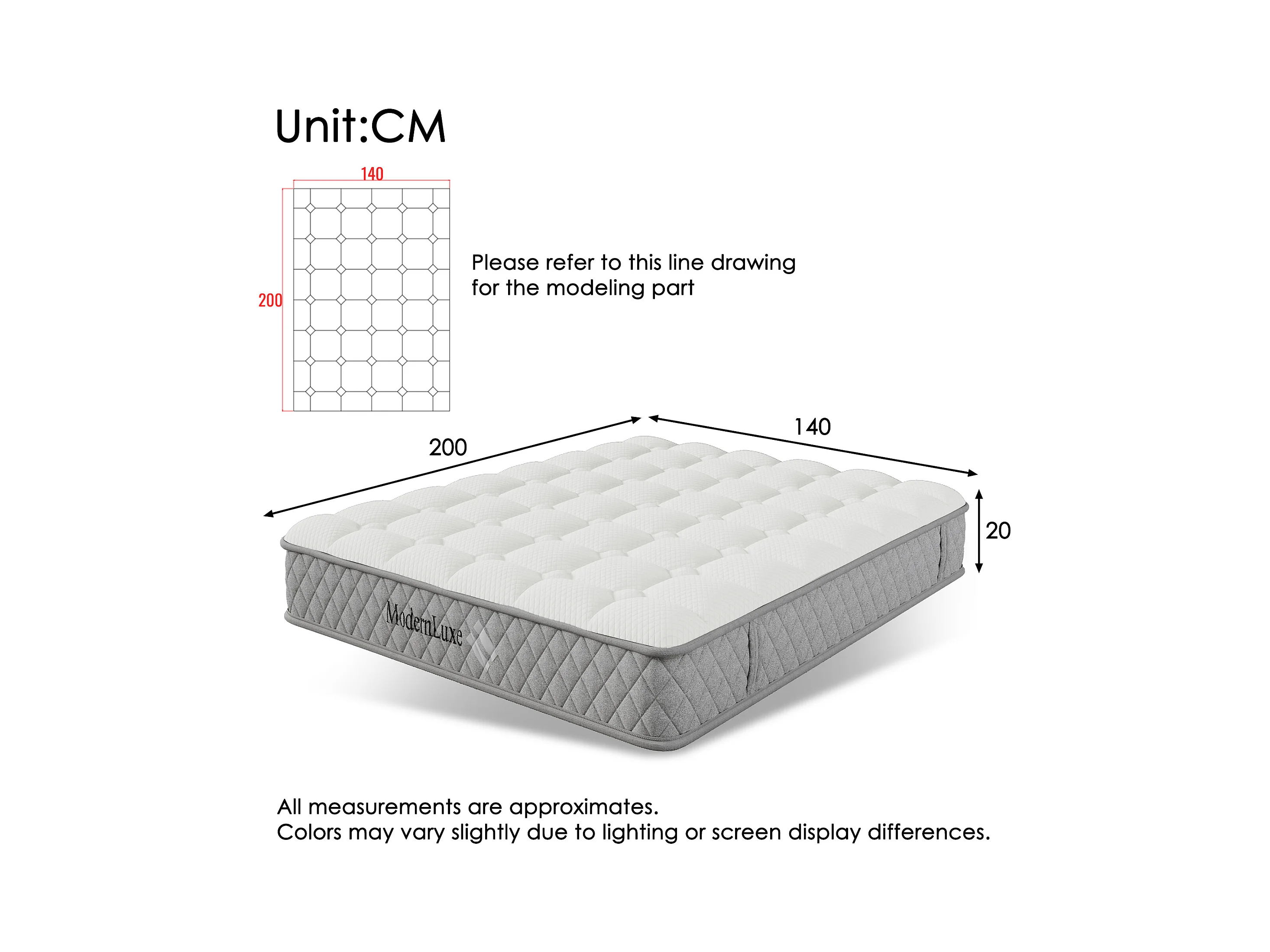 Matelas orthopédique 140x200 cm avec ressorts ensachés à 7 zones, H3, mousse froide, certifié OEKO-TEX® (200x140x20 cm)