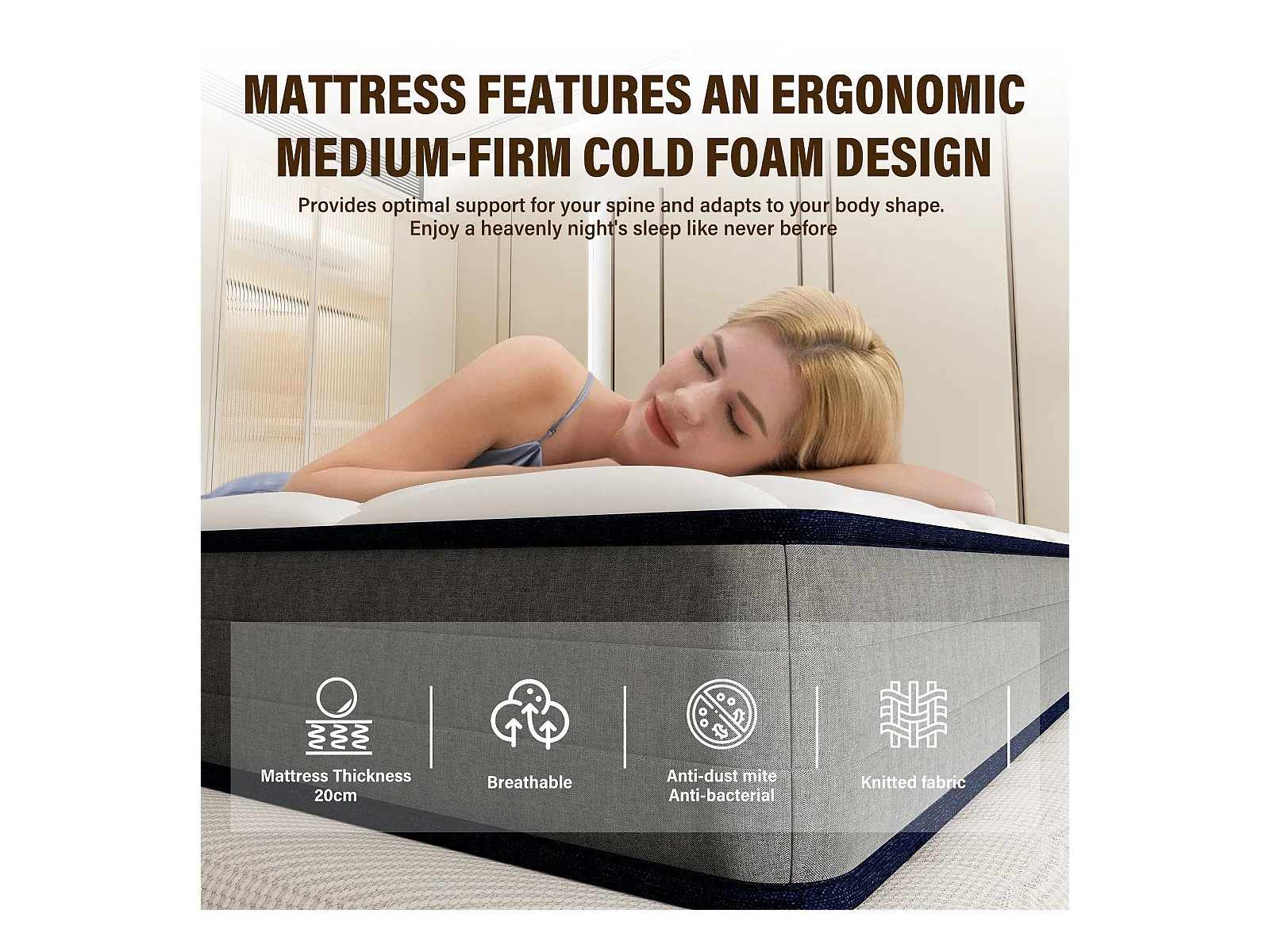 Matelas Ressorts 140x190cm de Forme en Mousse et Ressorts, 20 cm Épaisseur