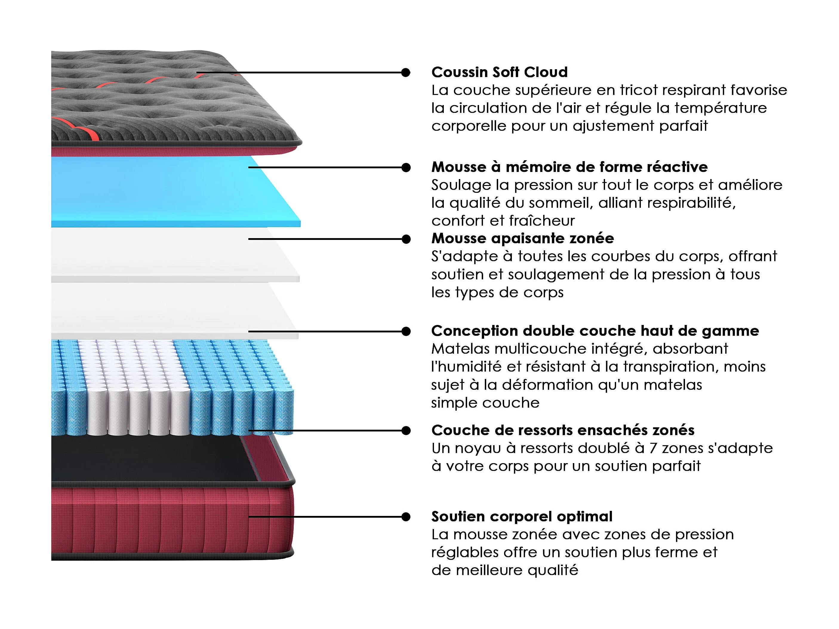 Matelas en mousse à mémoire de forme, 160 x 200 cm, épaisseur 17 cm, avec housse amovible