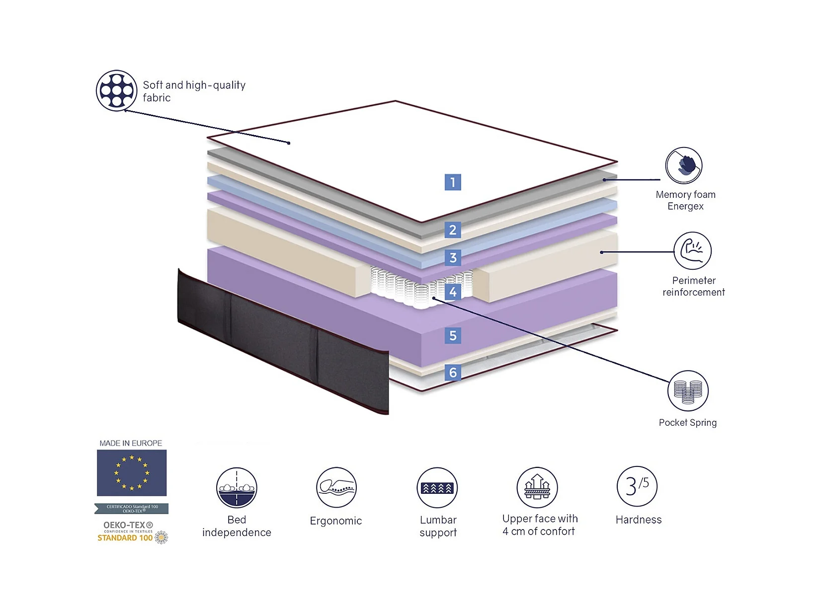 Matelas 100X200 LYRA SPRING Épaisseur 29Cm - Micro-Ressorts Avec Mousse De Mémoire De Forme