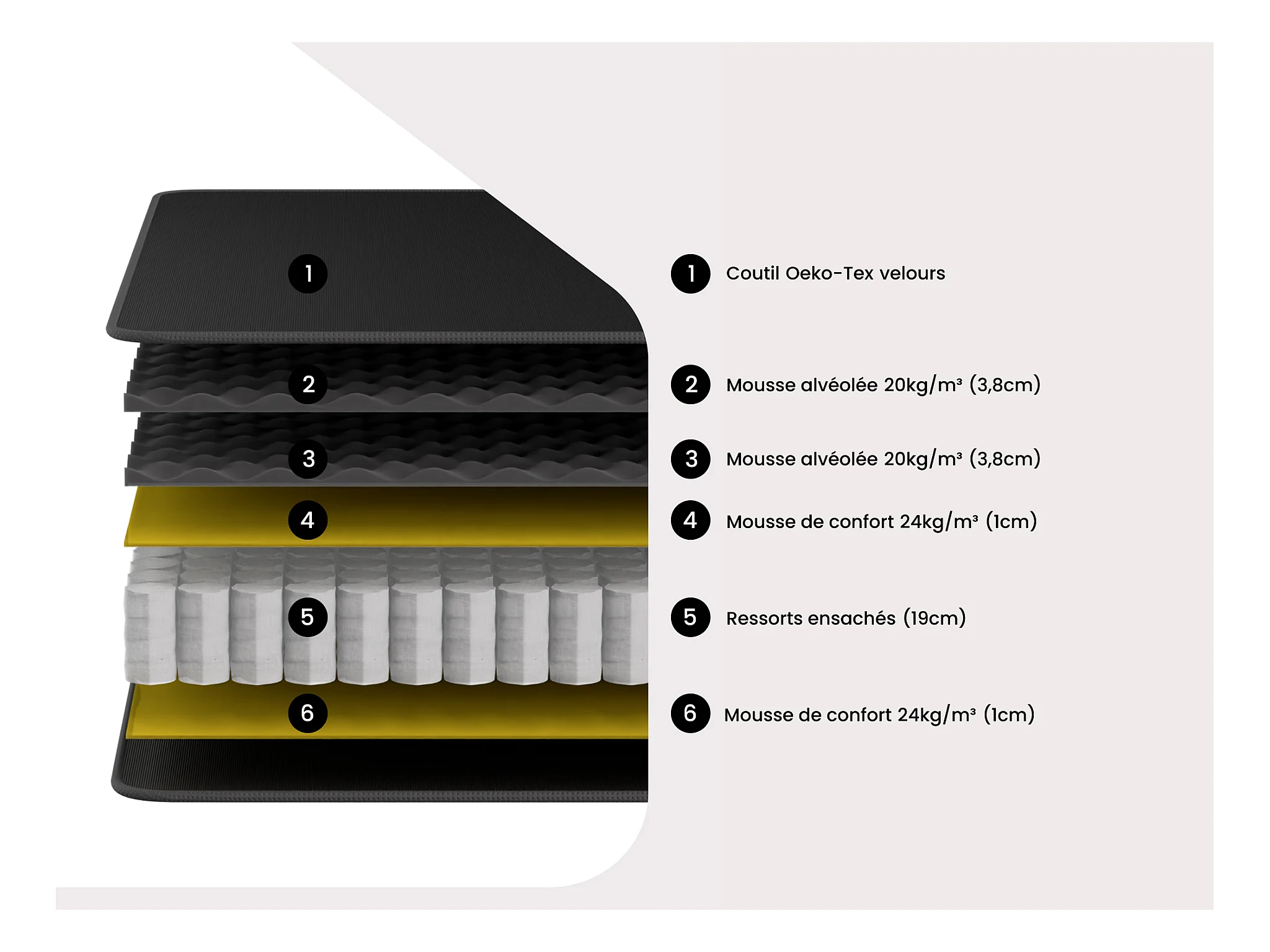 Matelas 180 x 200 cm ressorts ensachés surmatelas intégré ép.28cm - BLACK DREAM de YSMÉE