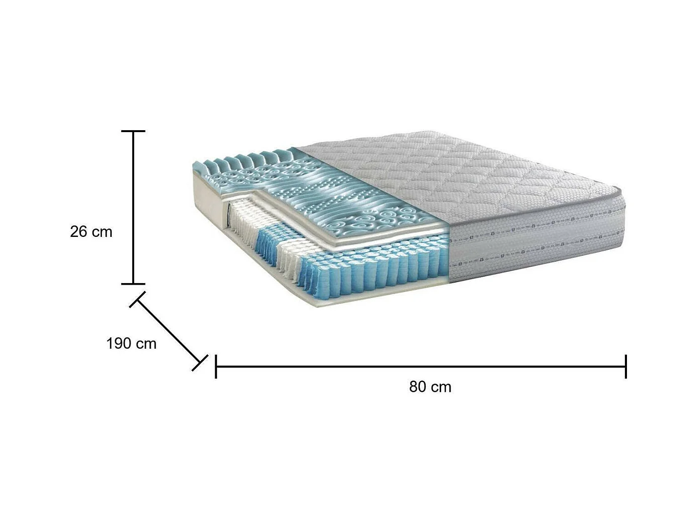 Matelas simple Dledr, matelas à mémoire de forme et à ressorts ensachés, 100% Made in Italy, anti-acariens et hypoallergénique, 80x190h26 cm