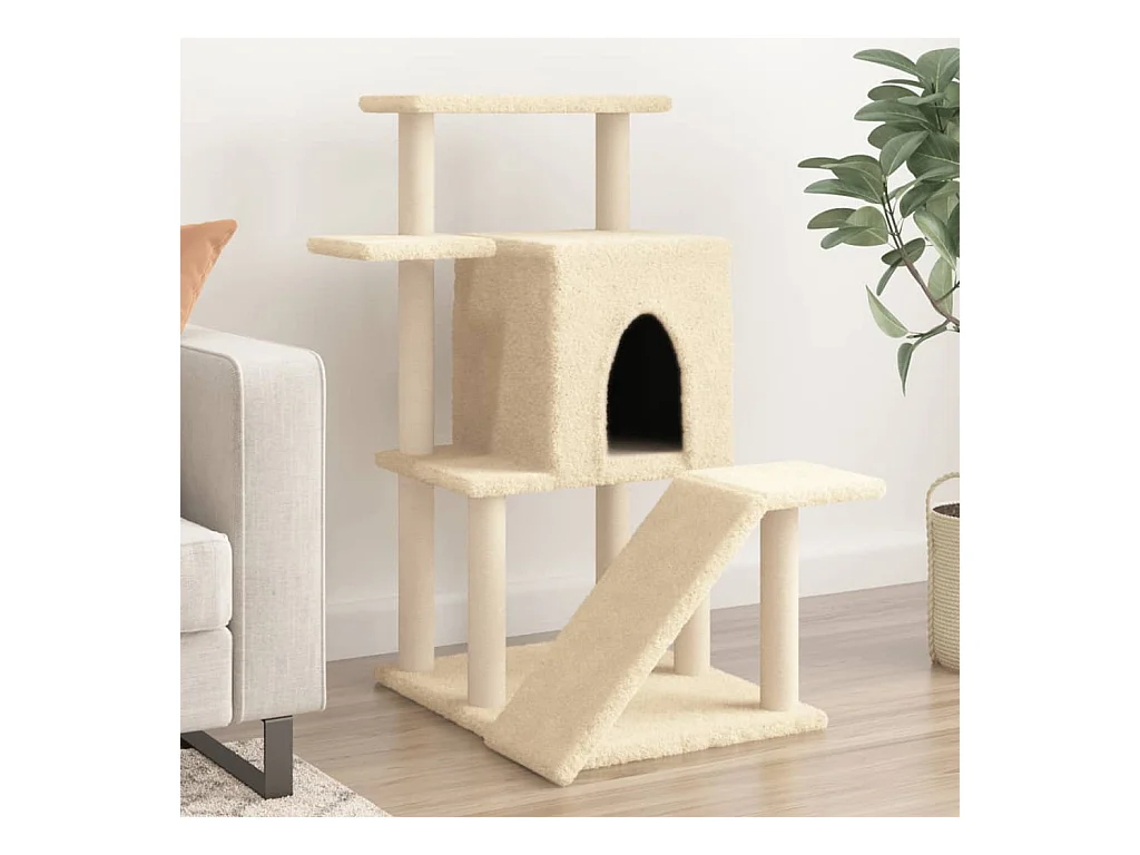 Gokberk Arbre à chat avec griffoirs en sisal crème 122 cm
