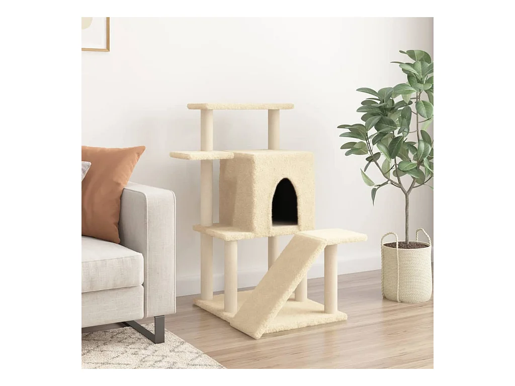 Arbre à chat avec griffoirs en sisal crème 97 cm