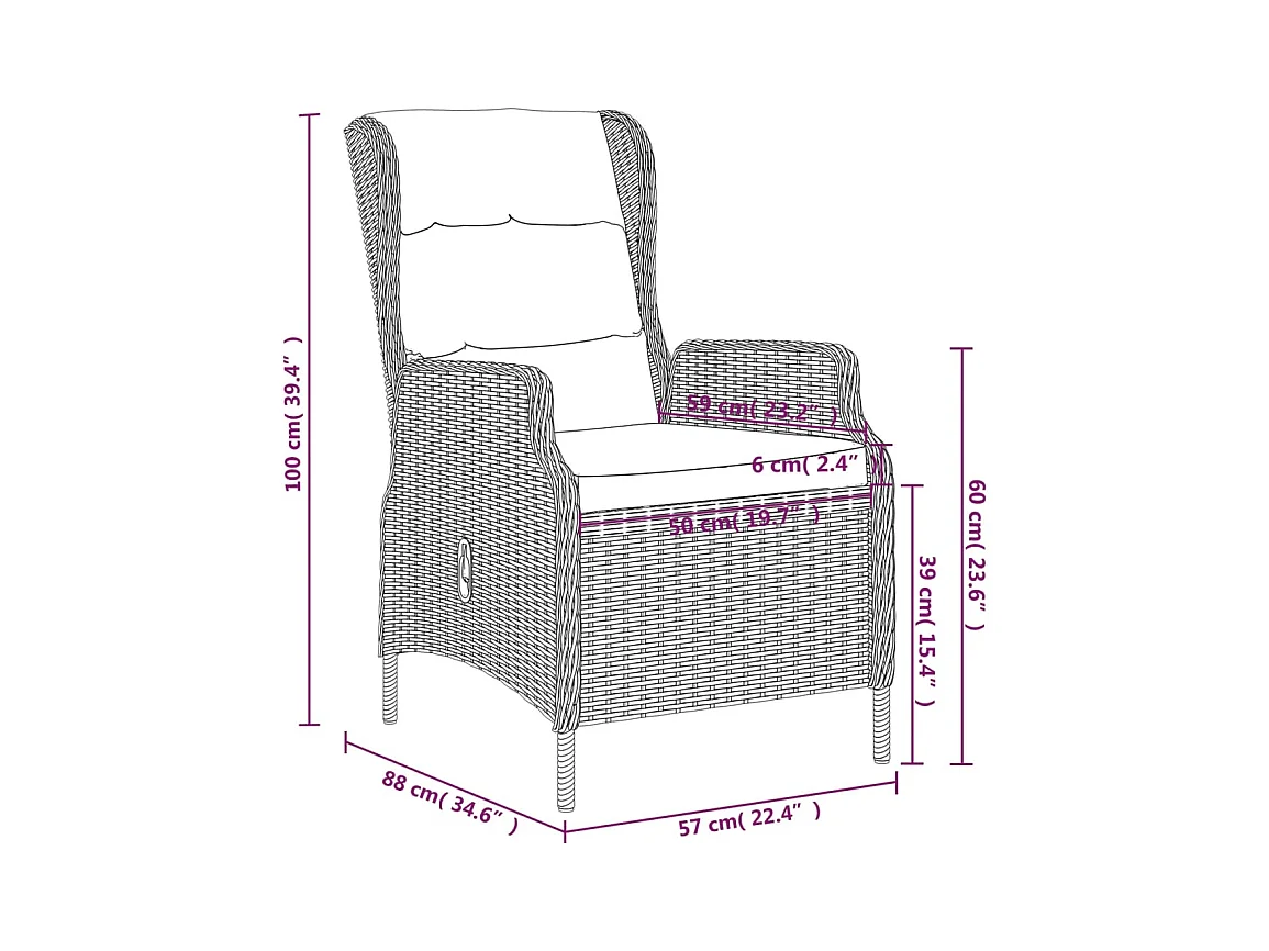 Andaril Ensemble à manger de jardin coussins 17 pcs Résine tressée Gris