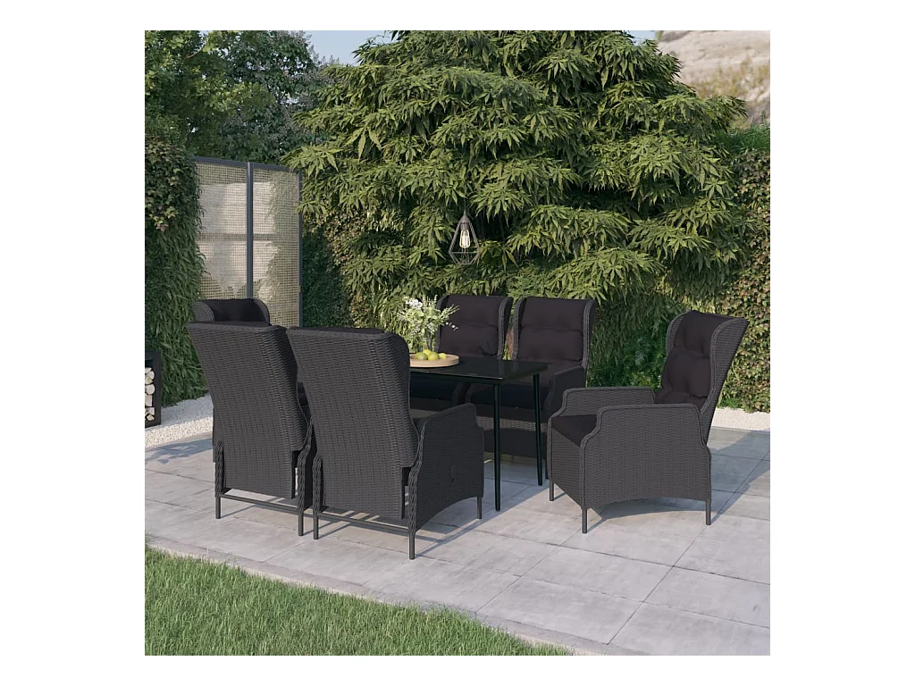 Central Point Ensemble à manger de jardin avec coussins 7 pcs Gris