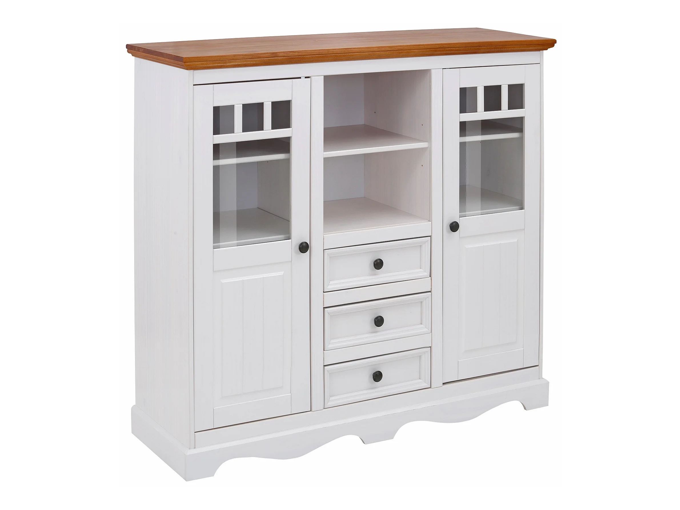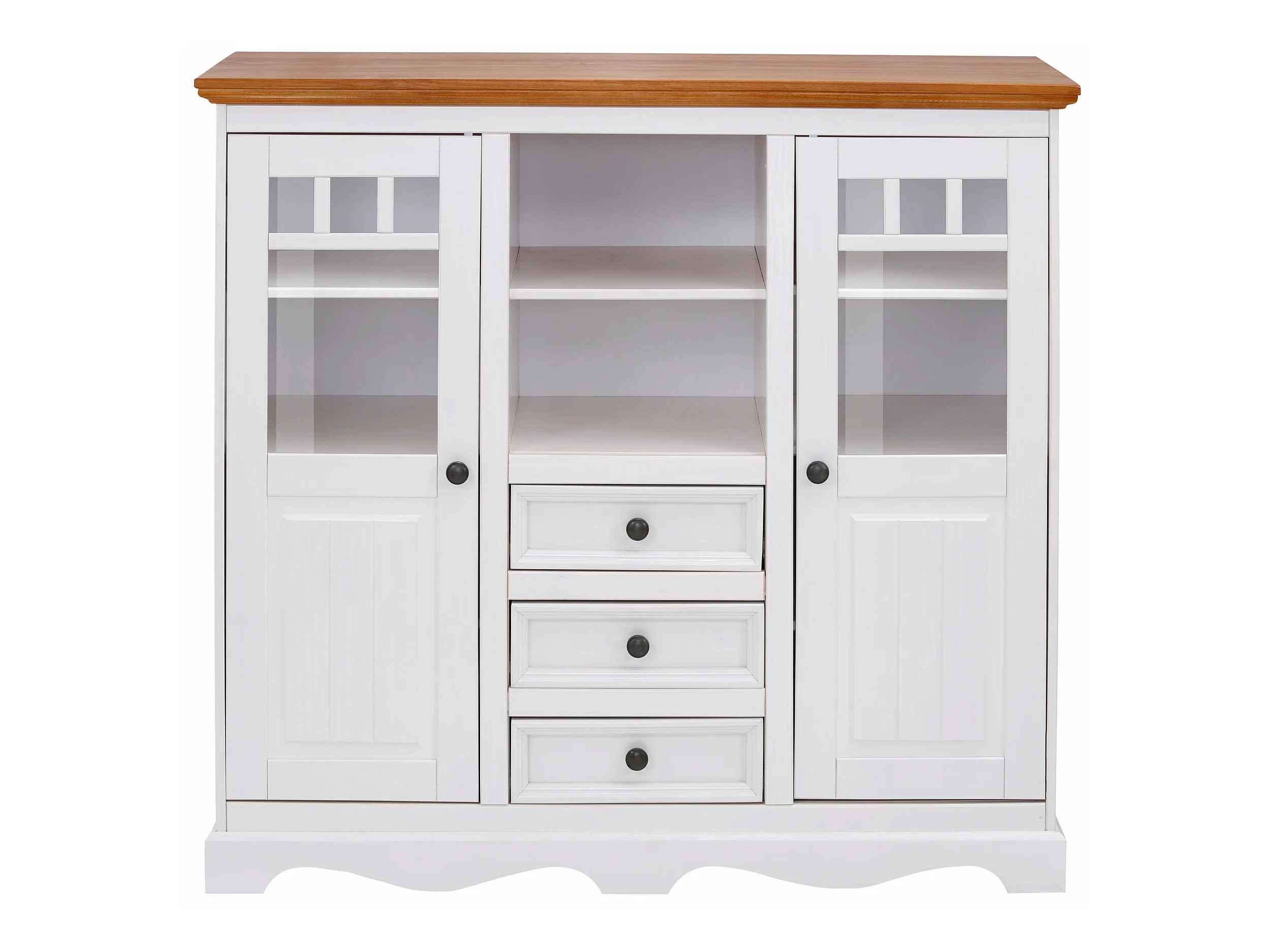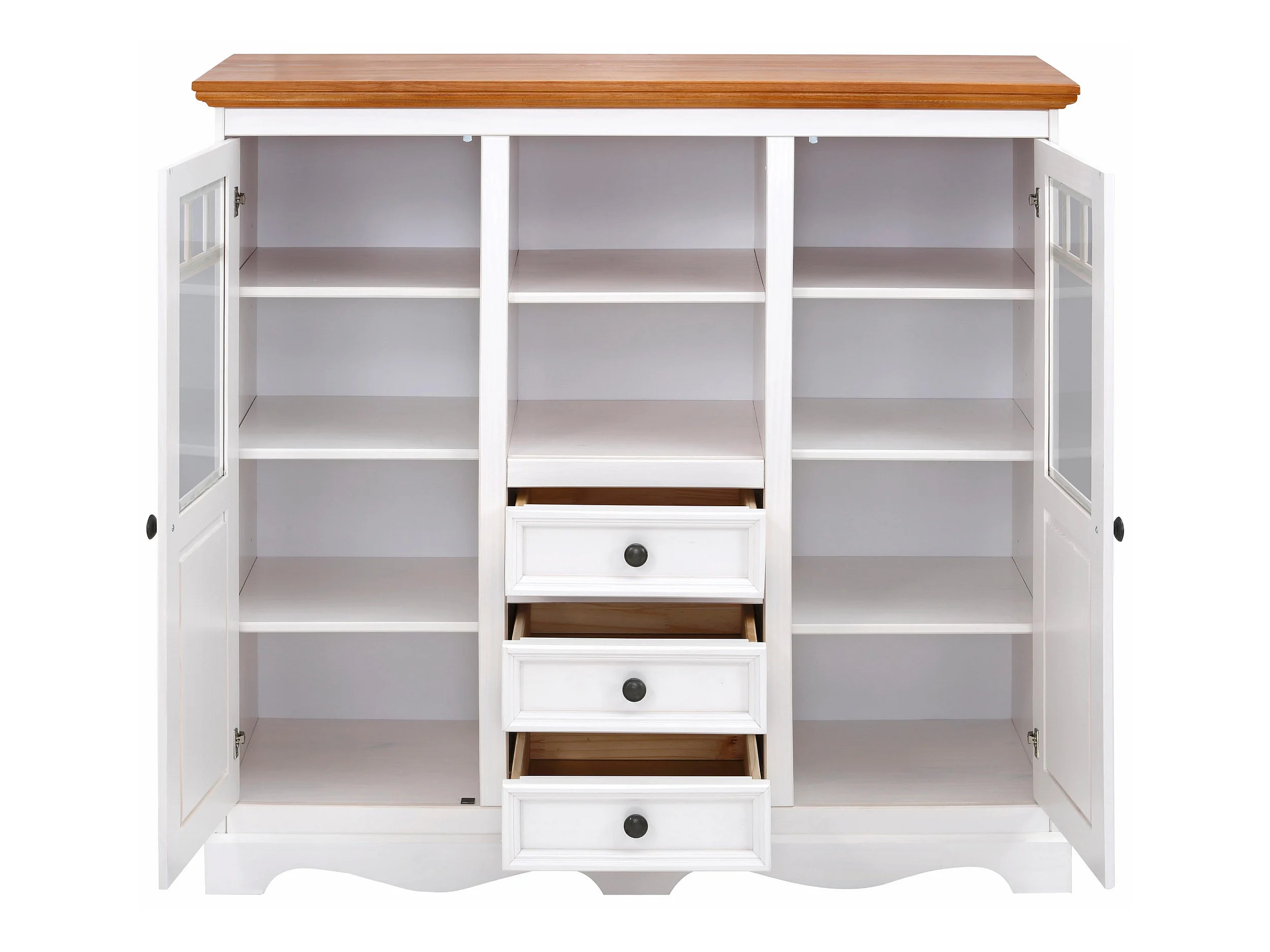 Melissa|Armoire avec 2 portes vitrées et 3 tiroirs en pin blanc