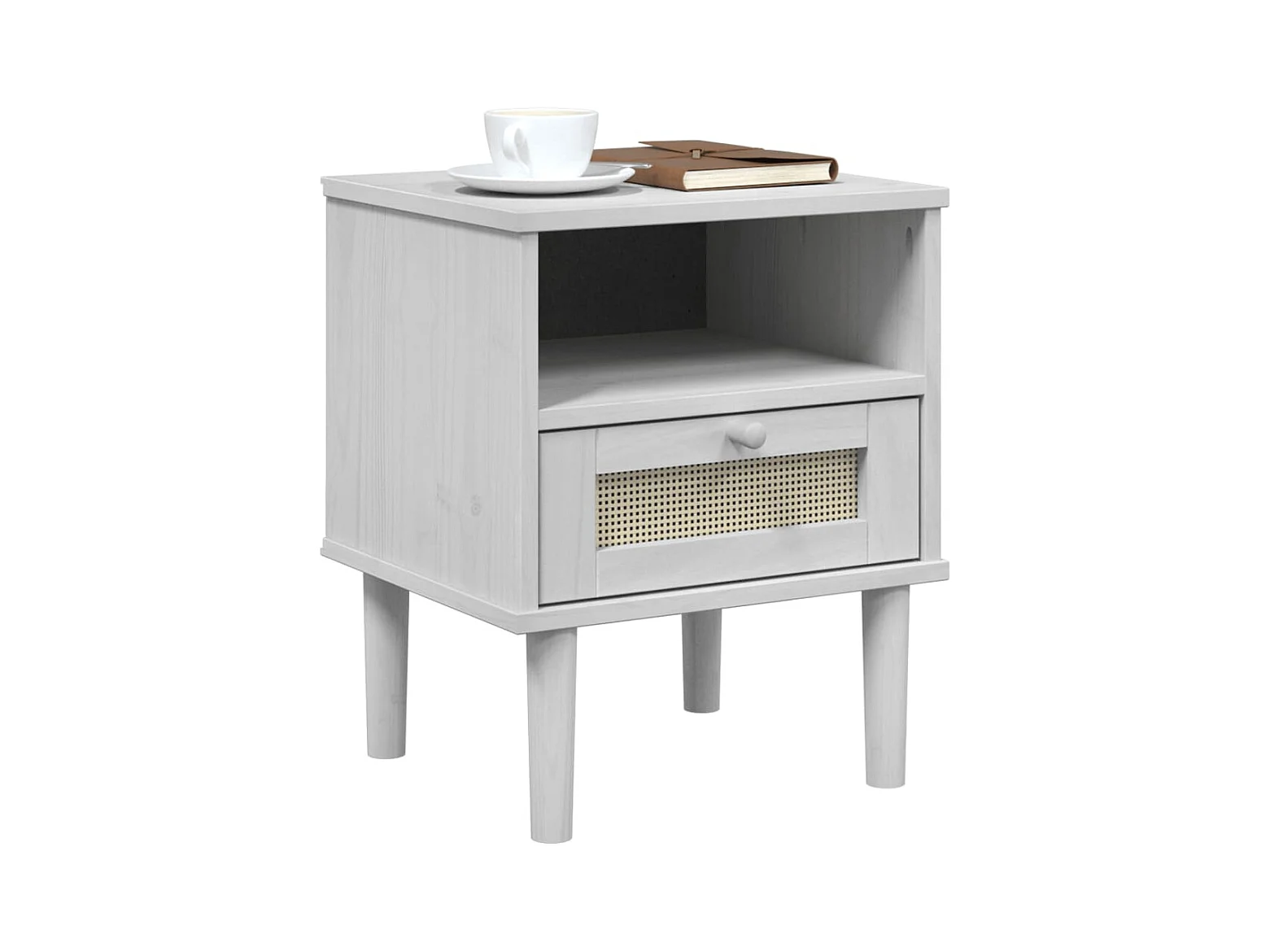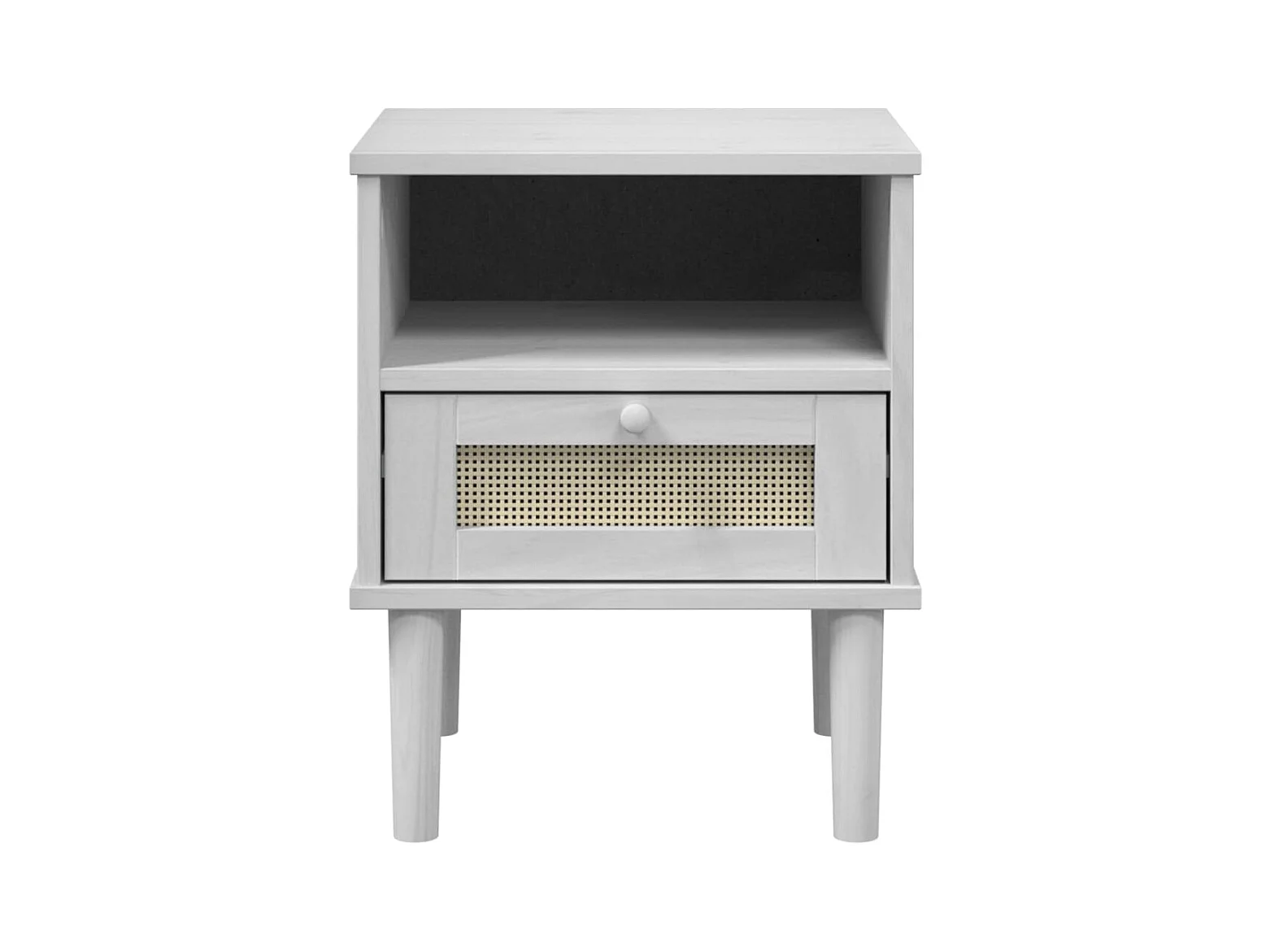Mercedes Patricia Table de chevet SENJA aspect de rotin blanc bois de pin massif