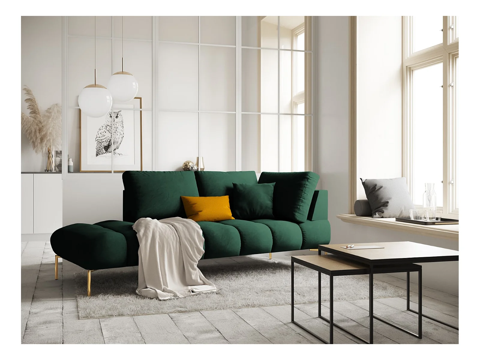 Cosmopolitan Design - Méridienne gauche "Vienna" en velours vert bouteille - 170x110x95cm