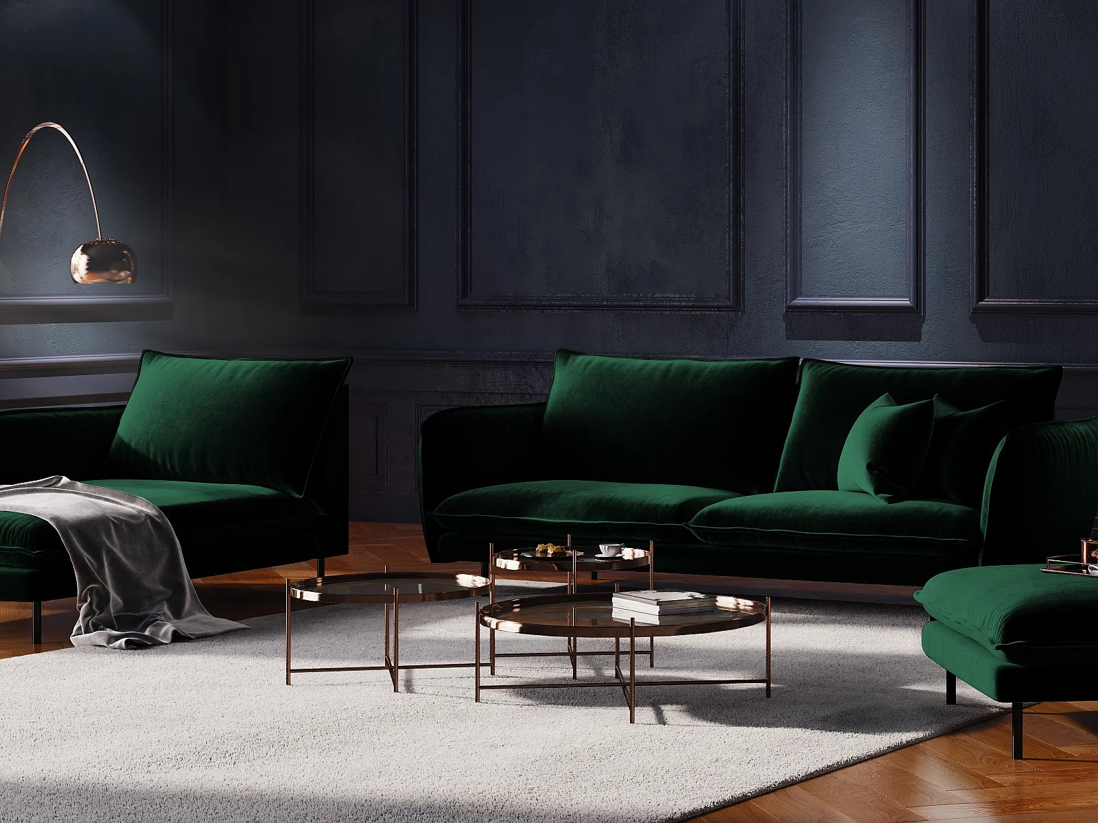 Cosmopolitan Design - Méridienne gauche "Vienna" en velours vert bouteille - 170x110x95cm