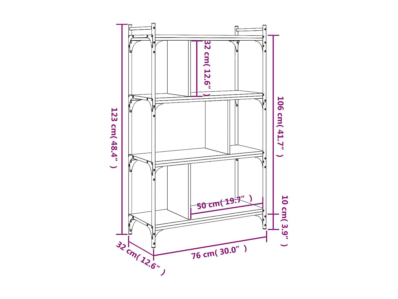 Merse Bibliothèque 4 niveaux chêne fumé 76x32x123cm bois d'ingénierie