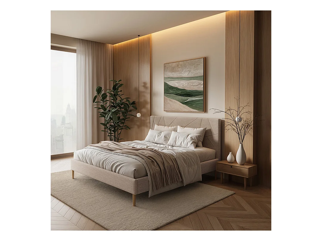 Mesonica Alano Lit, géométrique Crème, 140x200