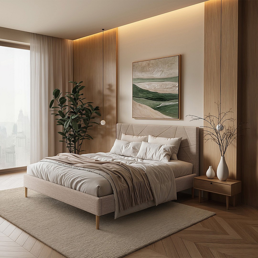 Mesonica Alano Lit, géométrique Crème, 180x200