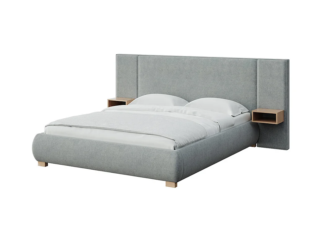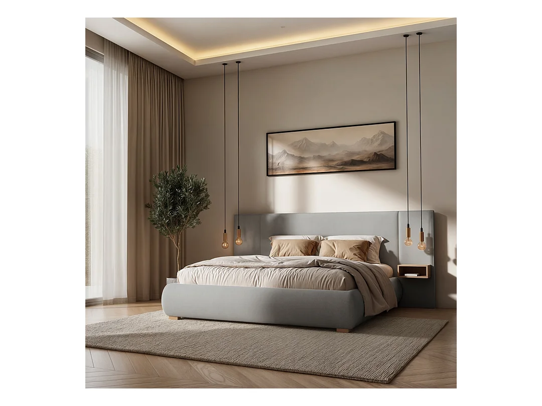Canapé-lit rembourré gigogne - 140 x 200 cm + 90 x 190 cm - Leds et prises - avec rangements - Tissu flanelle - Gris clair
