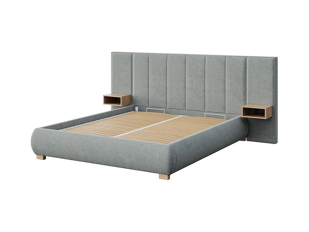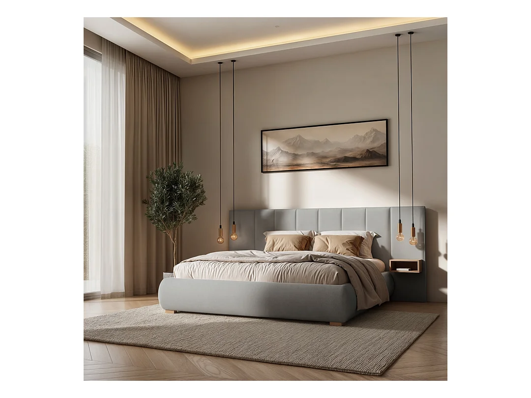Lit gigogne 90/180 x 190 cm pour enfant - Tissu en lin - LEDs et prise USB - coloris gris foncé