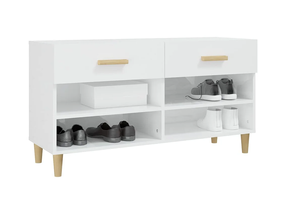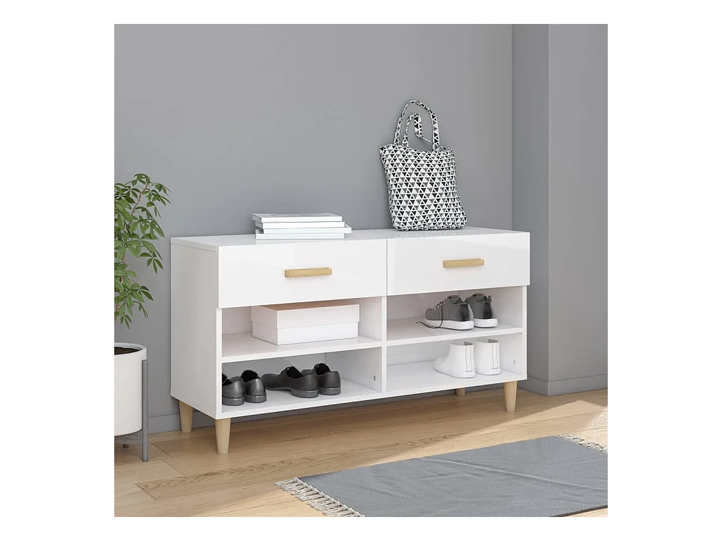 Meuble à chaussure Blanc brillant 102x35x55 cm Bois ingénierie FR41425