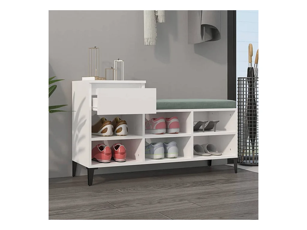 Meuble à chaussure Blanc brillant 102x36x60 cm Bois ingénierie FR42055