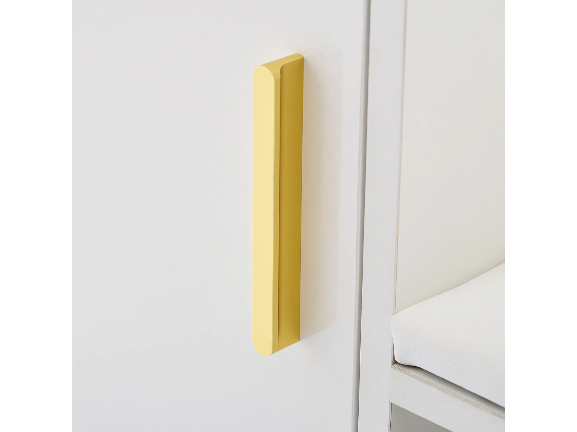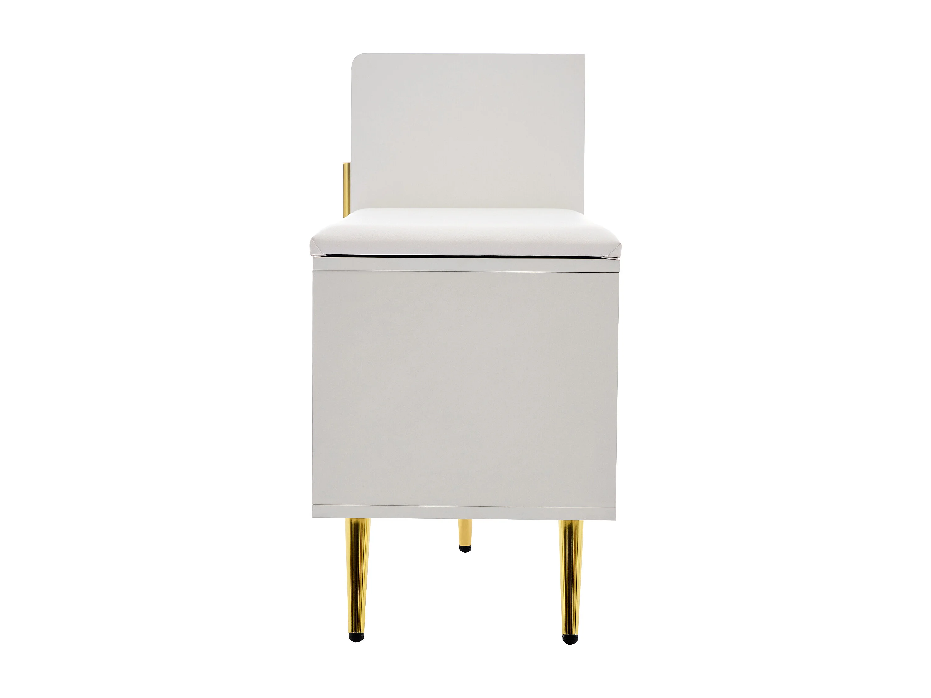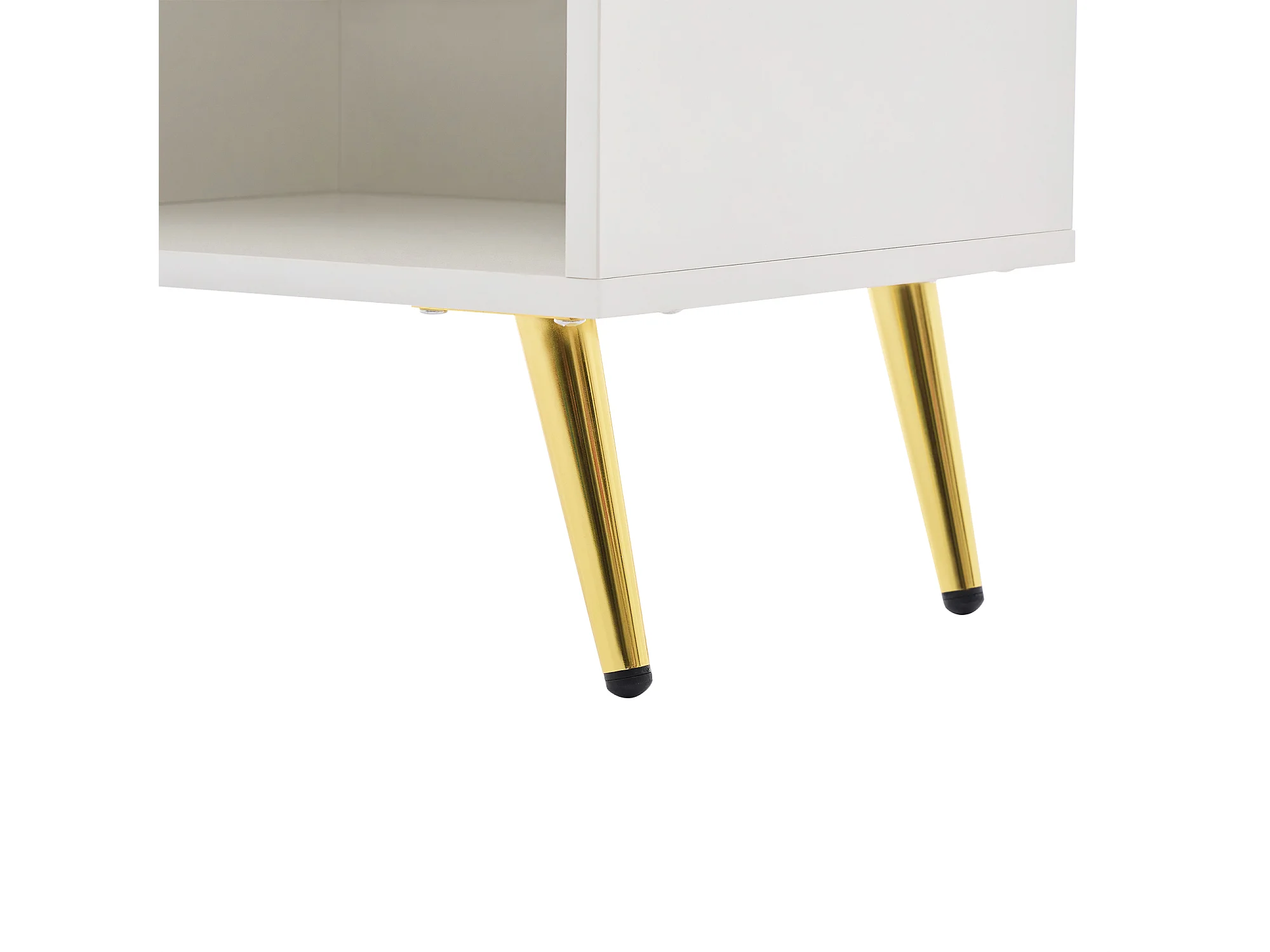 Meuble à chaussures blanc avec tiroirs, portes texturées, étagères réglables, poignées et pieds dorés - design élégant