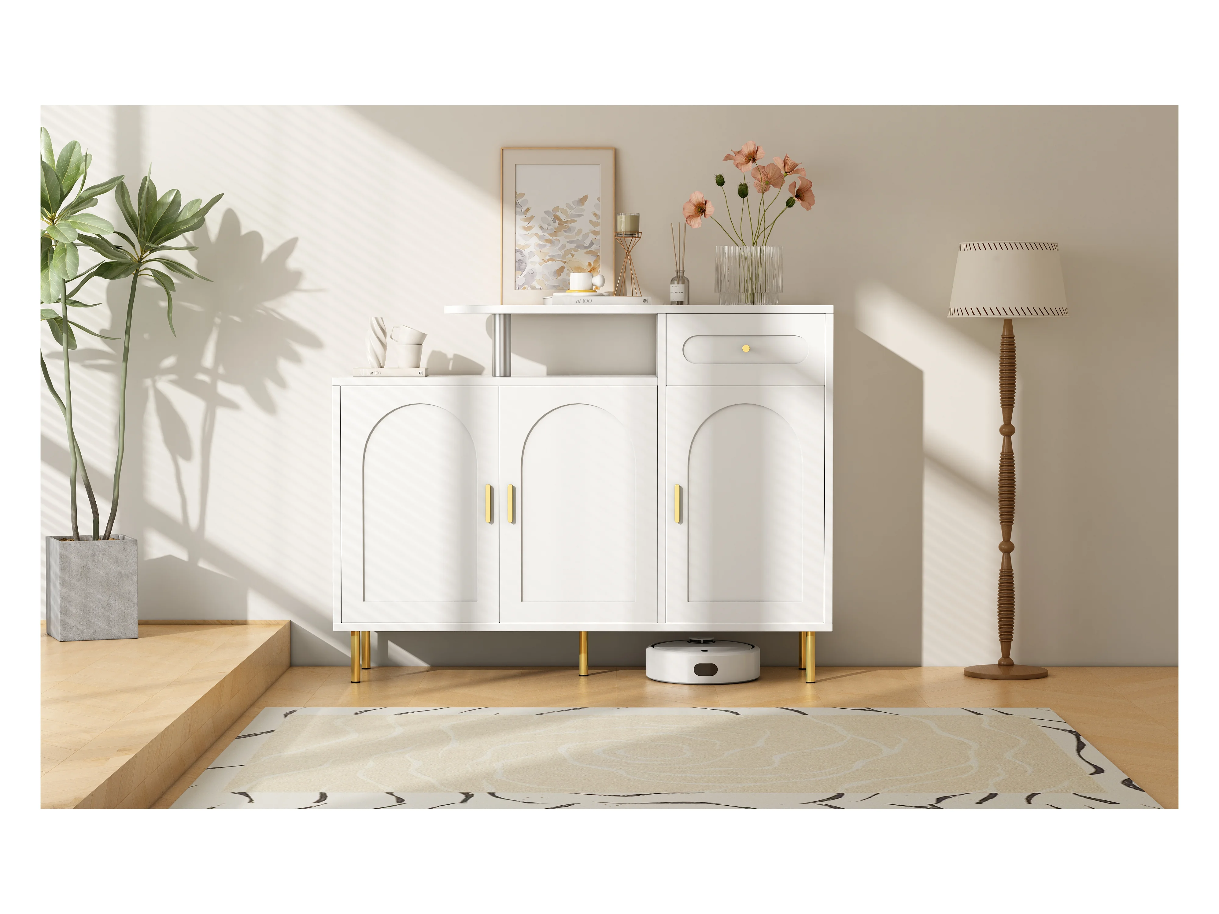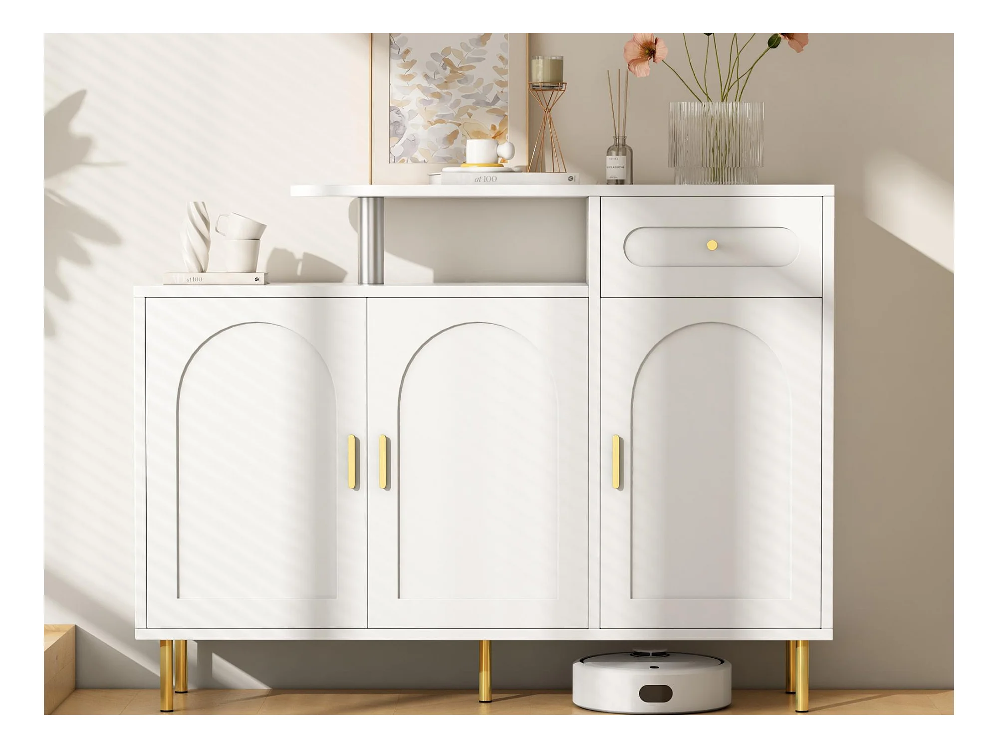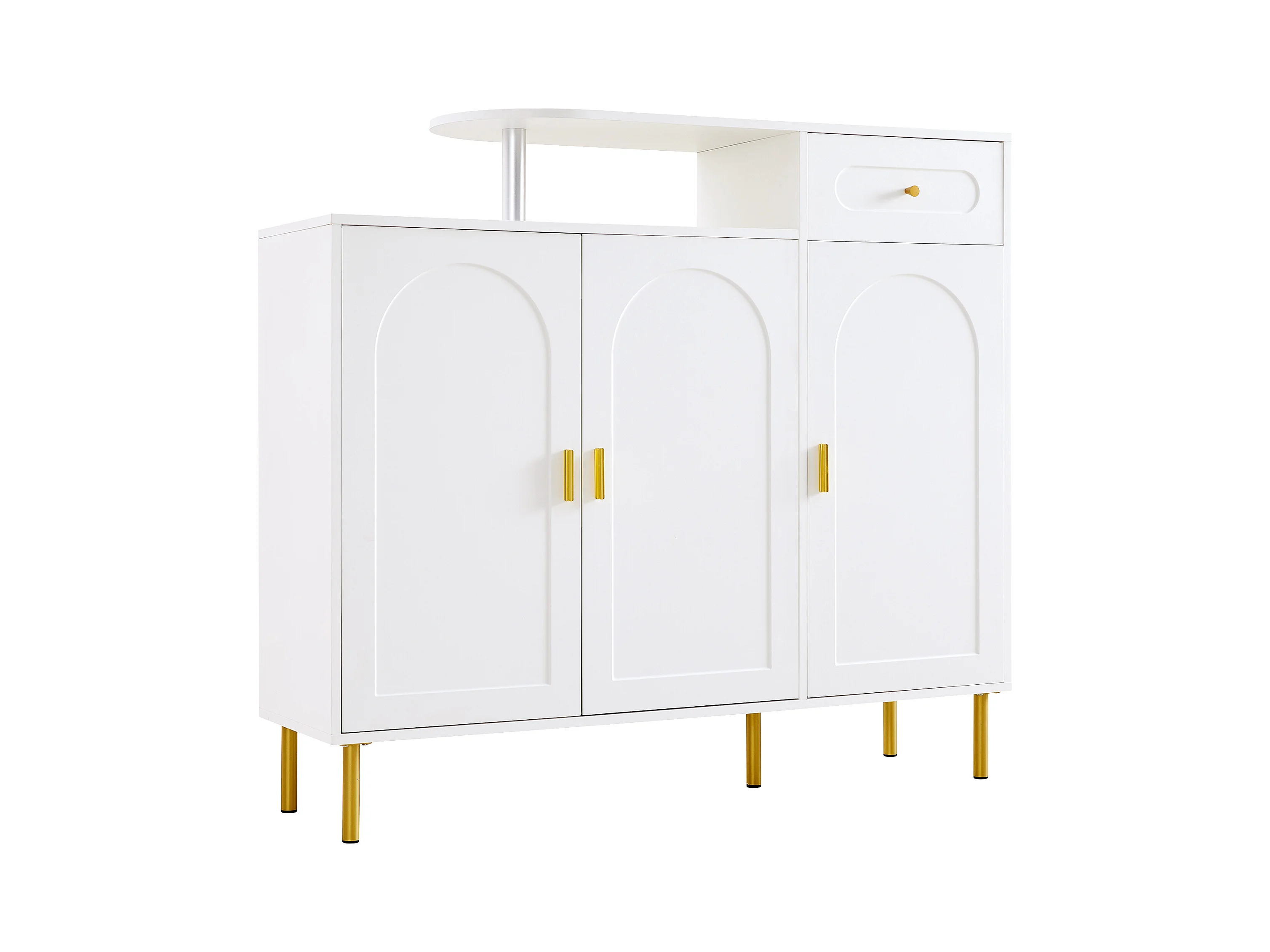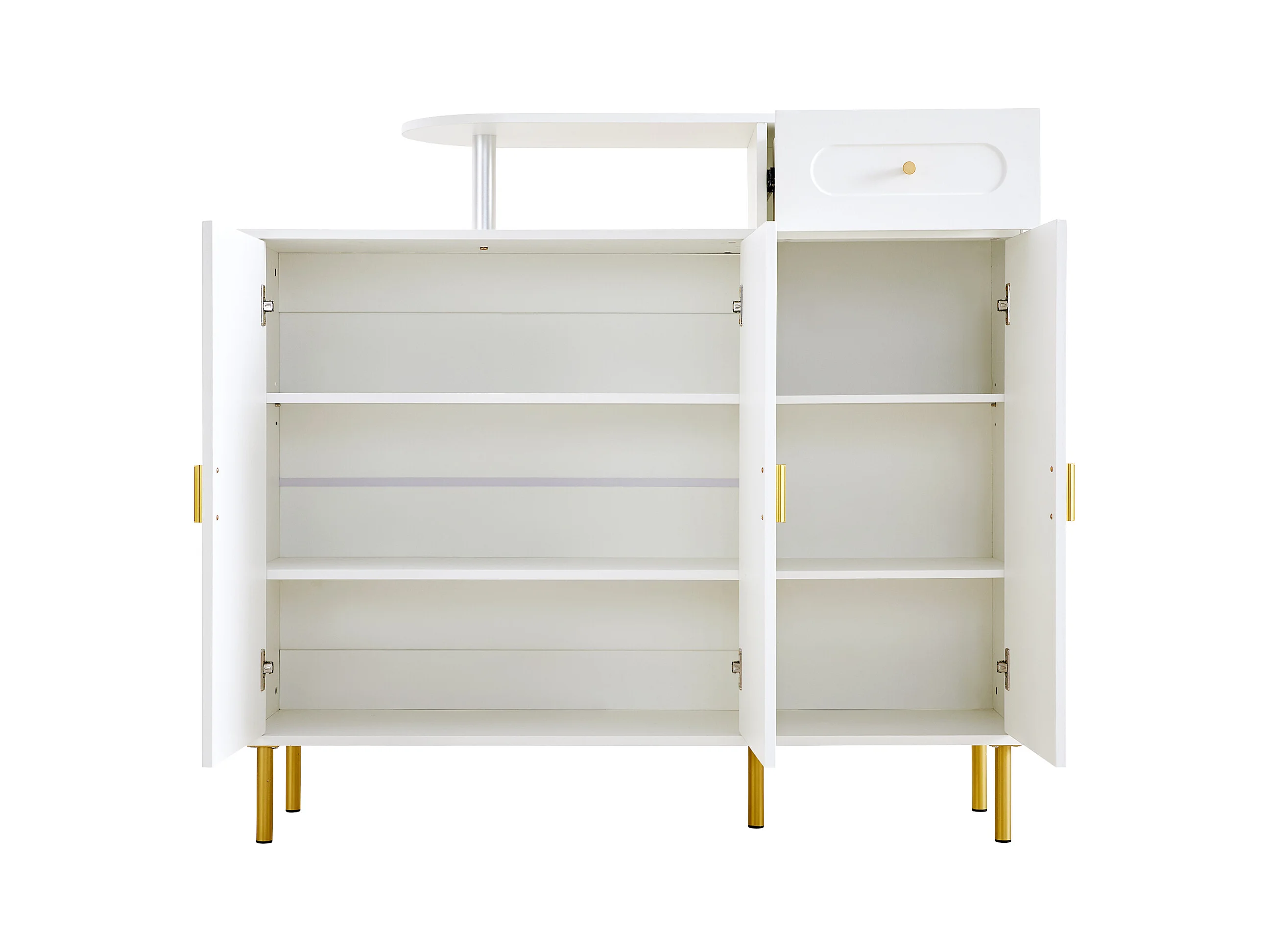 Meuble à chaussures 120x35x92cm - 1 tiroir + 3 portes - pieds en métal - Blanc