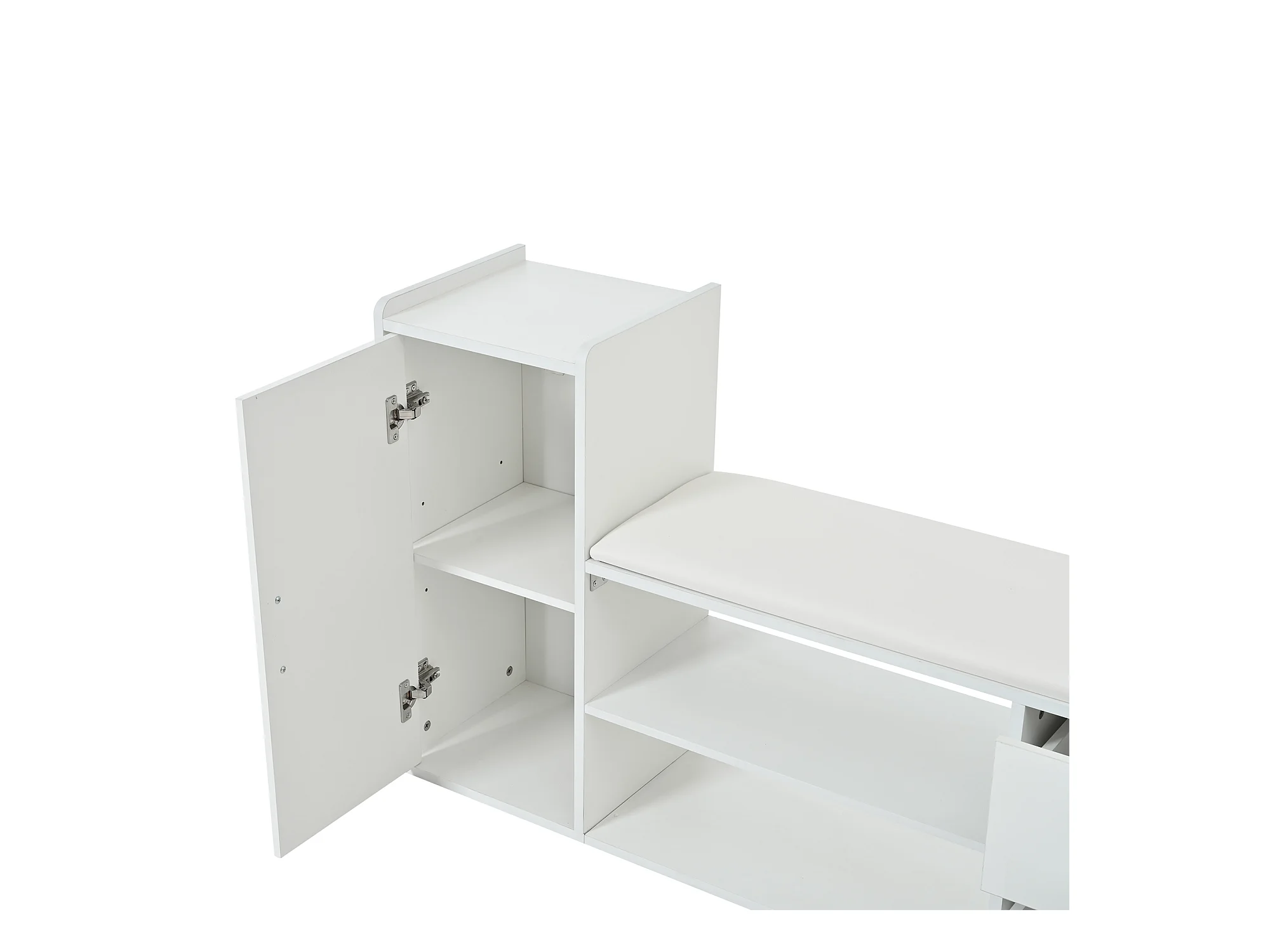 Meuble à chaussures multifonction 119x24x122cm - avec 3 tiroirs rabattables - avec banc rabattable - avec une porte - blanc