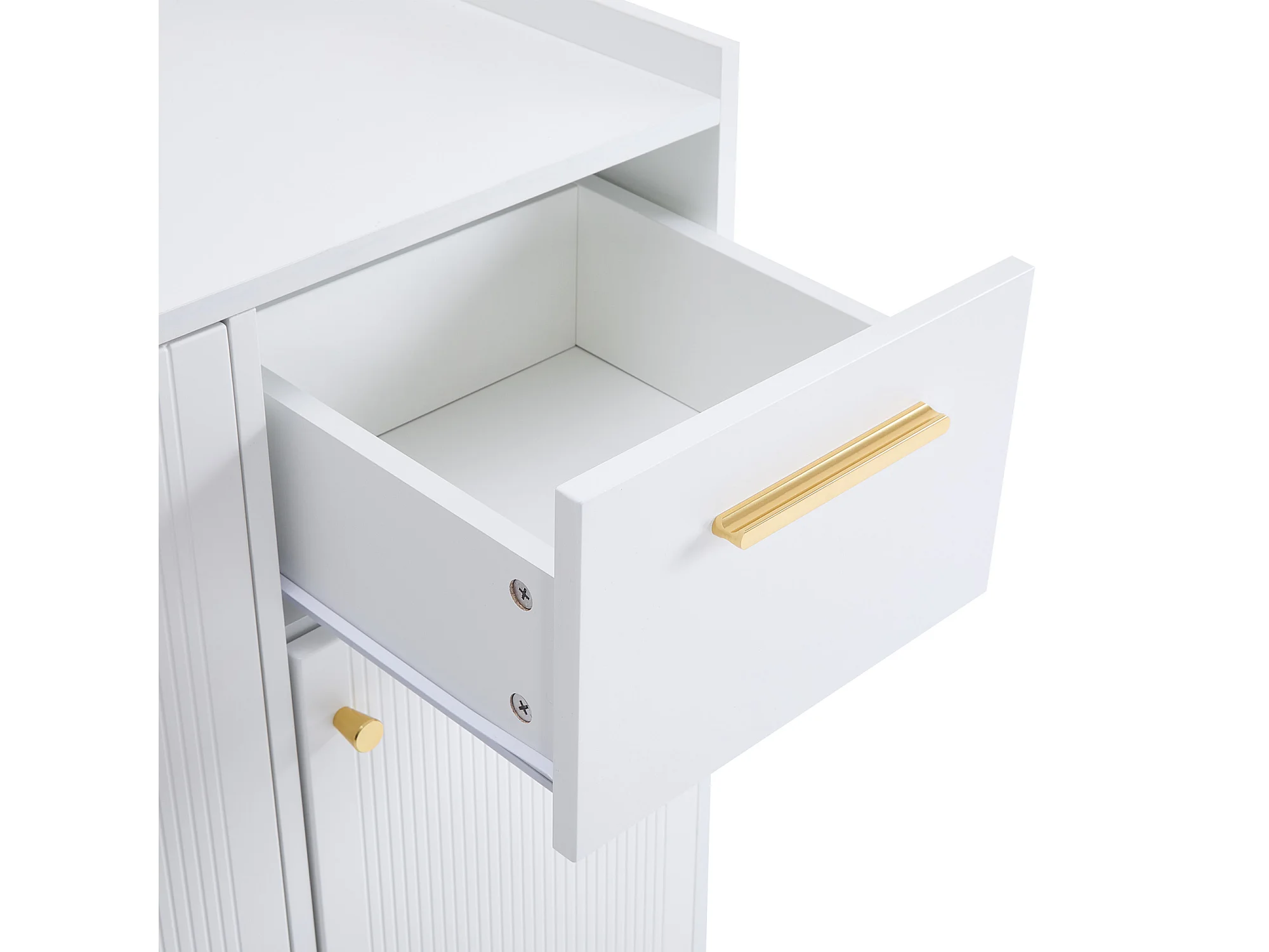 Meuble à chaussures 130x37x100 cm avec deux tiroirs et quatre portes d'armoire panneaux de particules en blanc pour salon
