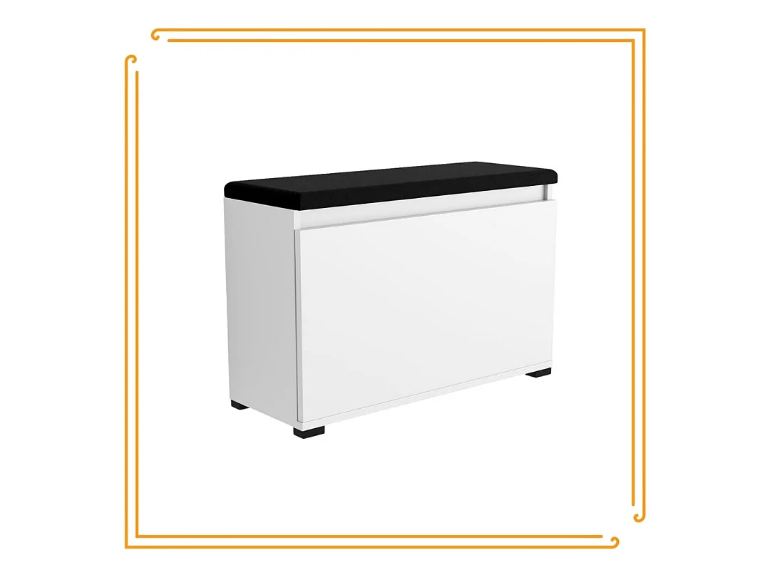 Meuble à chaussures blanc avec 3 abattants, 1 tiroir et 1 porte, style moderne - pour entrée ou salon