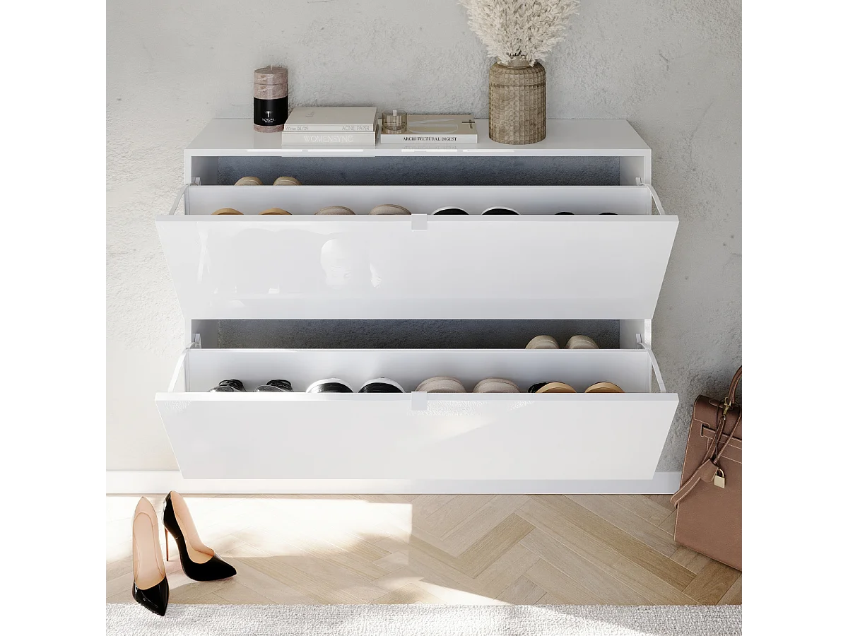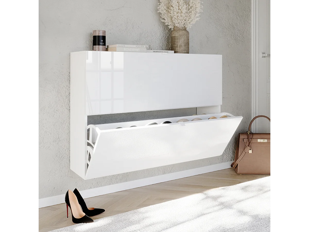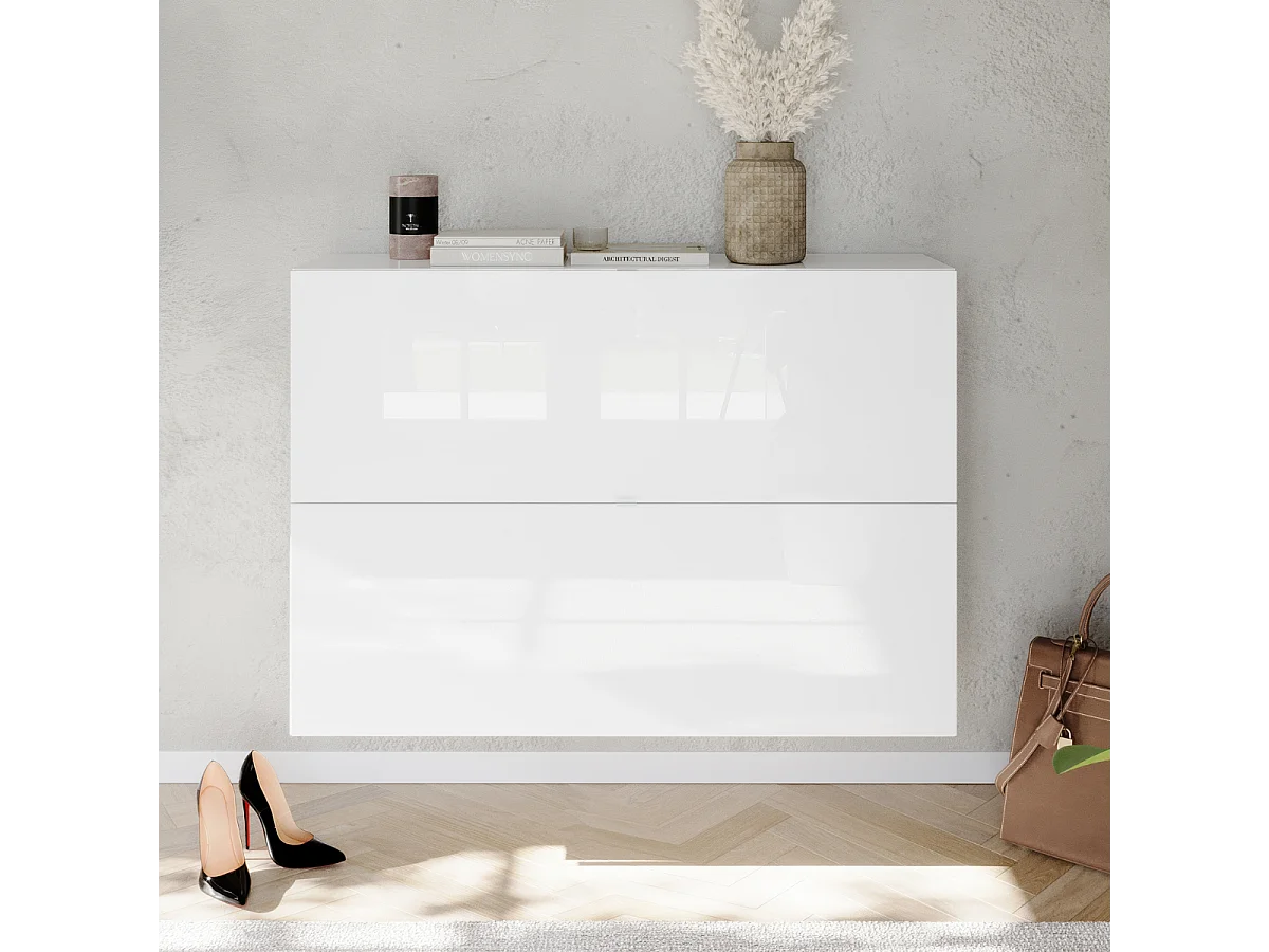 Meuble à chaussures 2 abattants blanc L110 cm SMILE