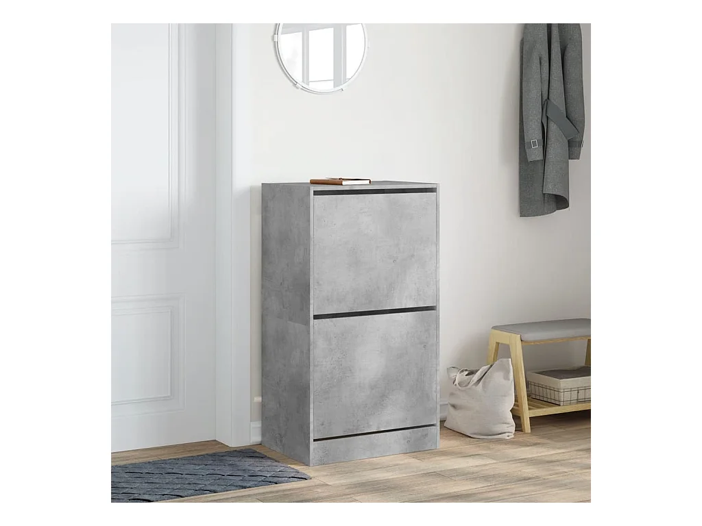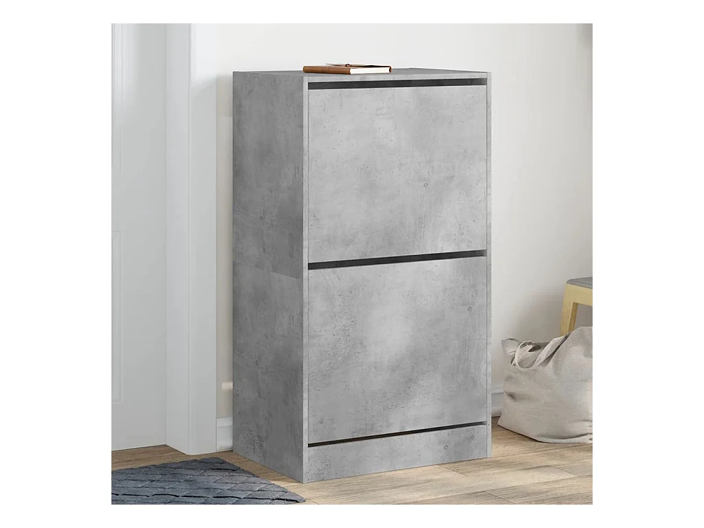 Meuble à chaussures 2 tiroirs rabattables gris béton FR28440