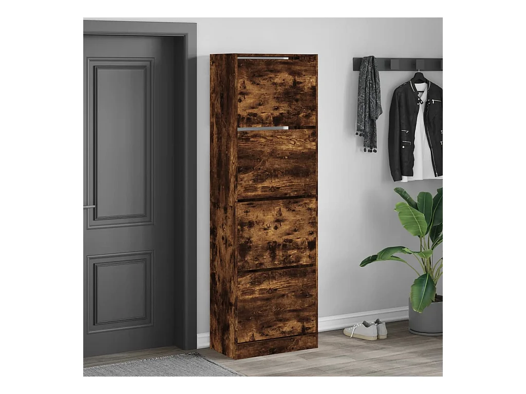 Meuble à chaussures 4 tiroirs rabattables chêne fumé FR47592