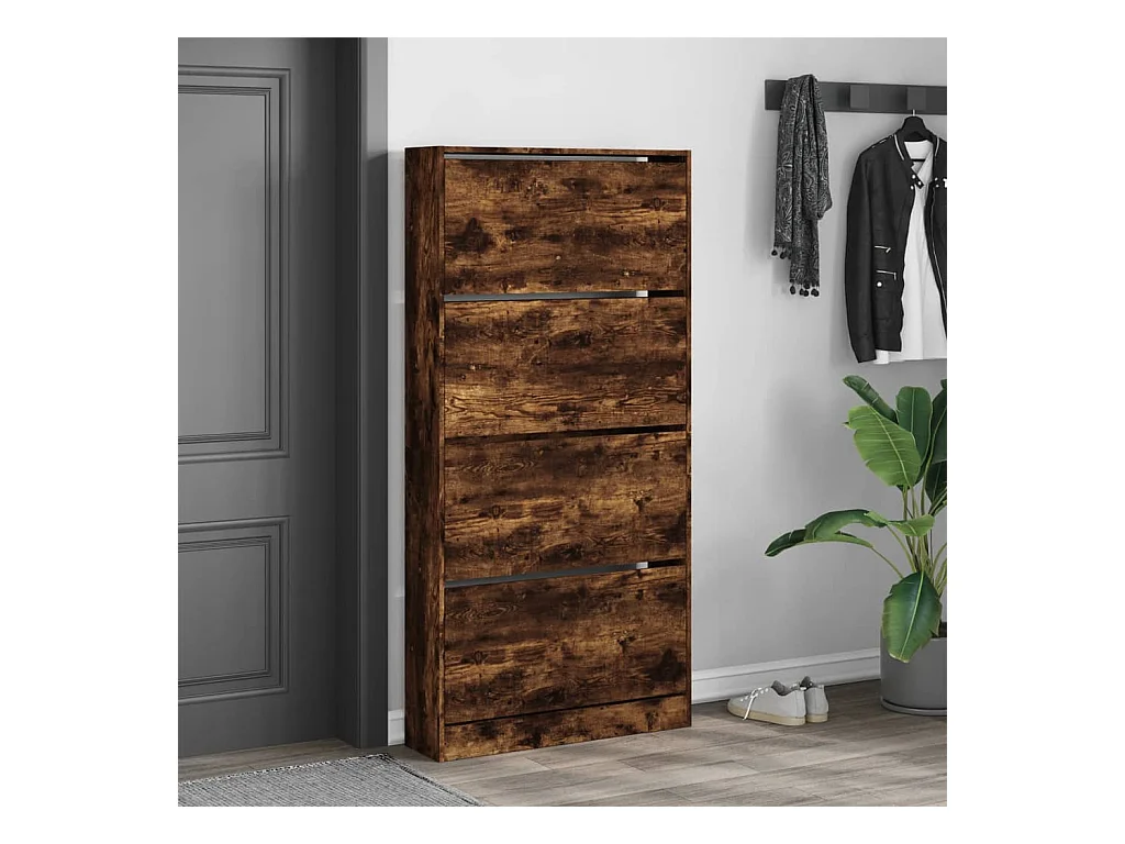 Meuble à chaussures 4 tiroirs rabattables chêne fumé FR95502