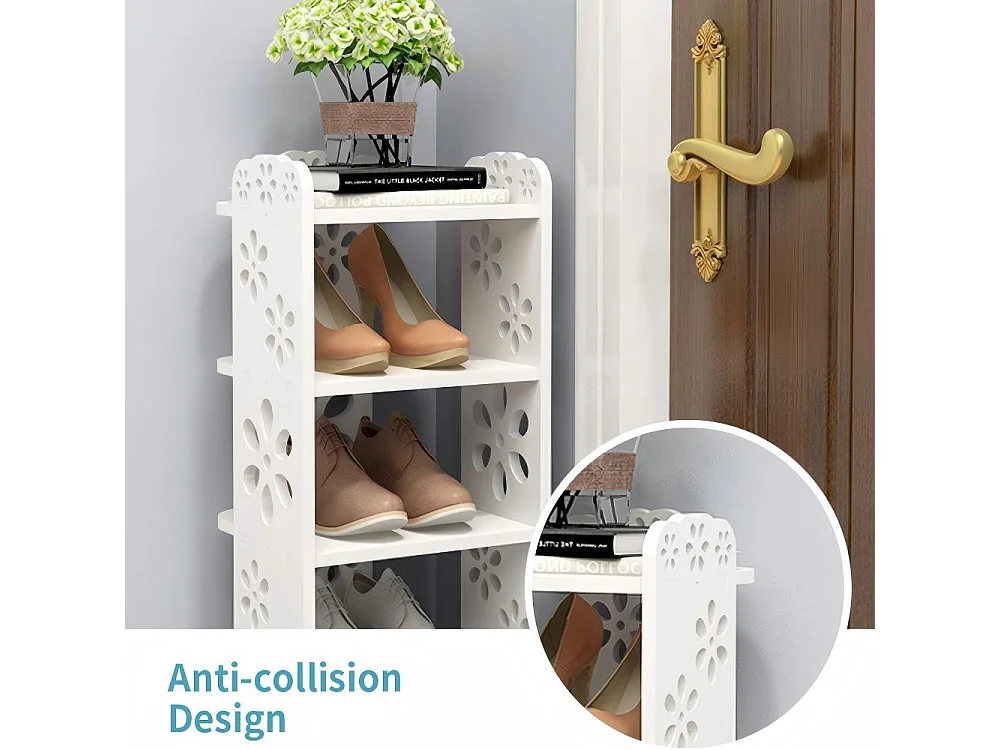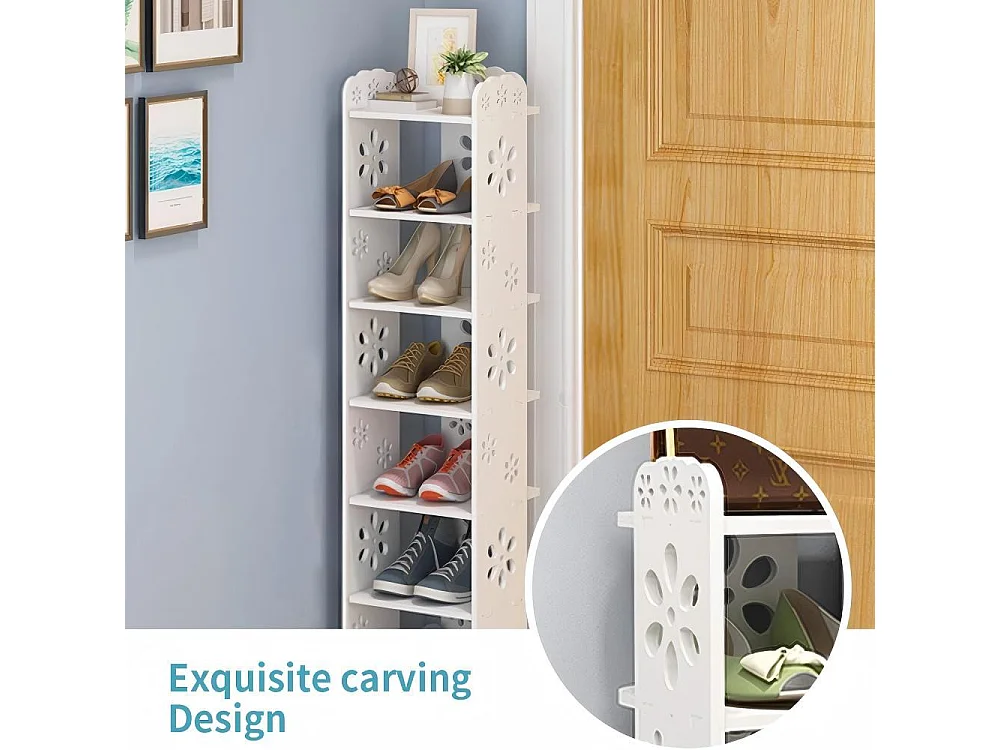 Meuble à Chaussures 6 Niveaux en Bois Plastique,Étagère de Rangement à Chaussures,26x25x81CM,Blanc